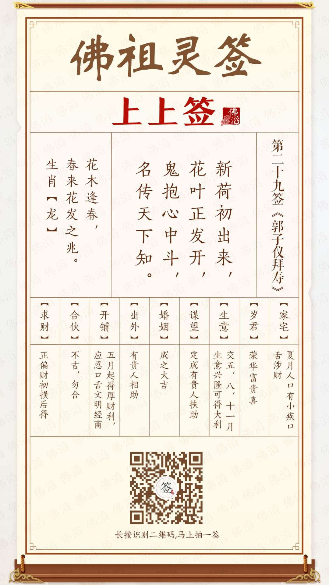 之卦似春花开之发,凡事勿疑有胆往外,有贵人扶助可得名利双全。