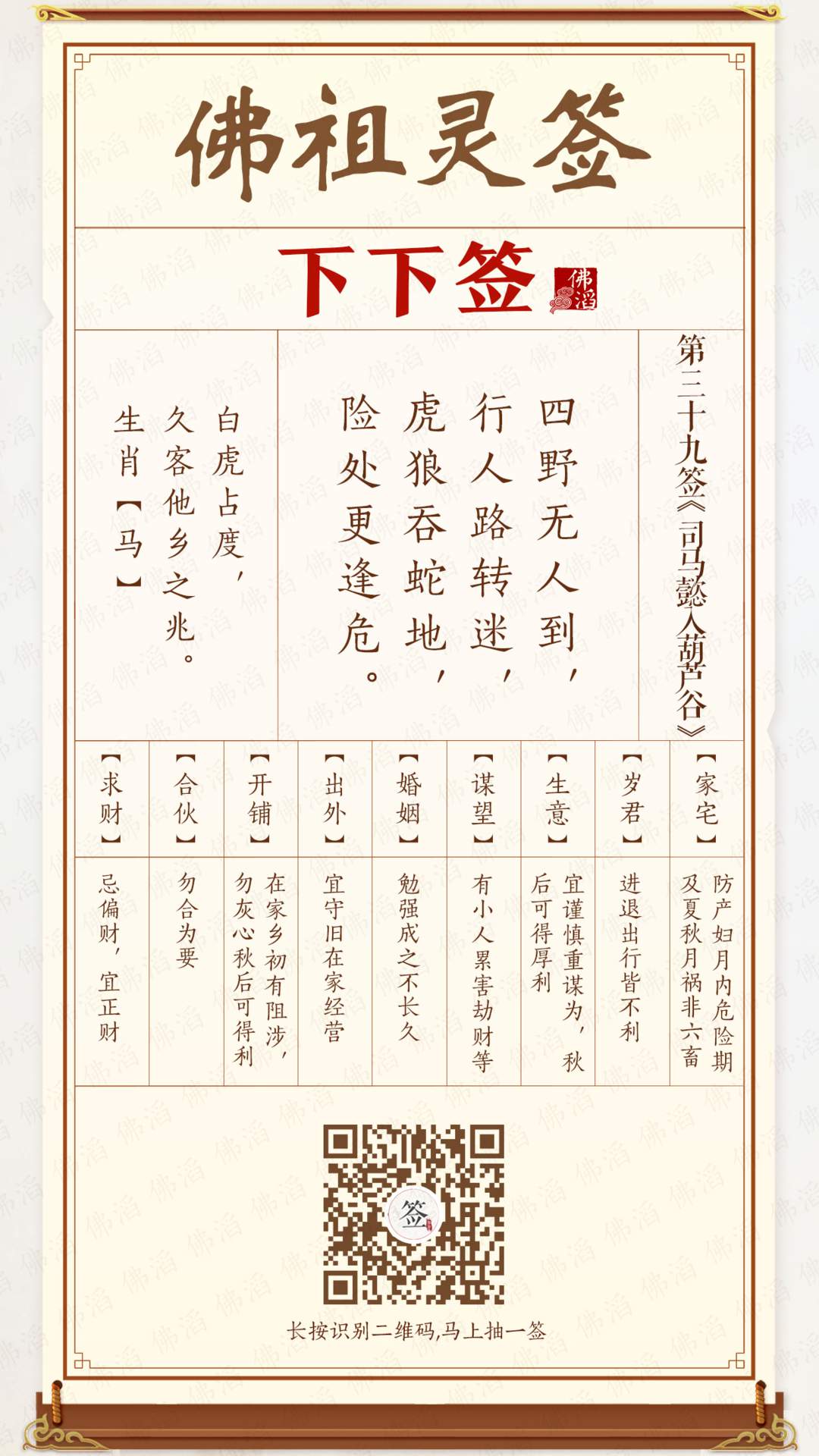 佛祖灵签 第三十九签 【下下签】