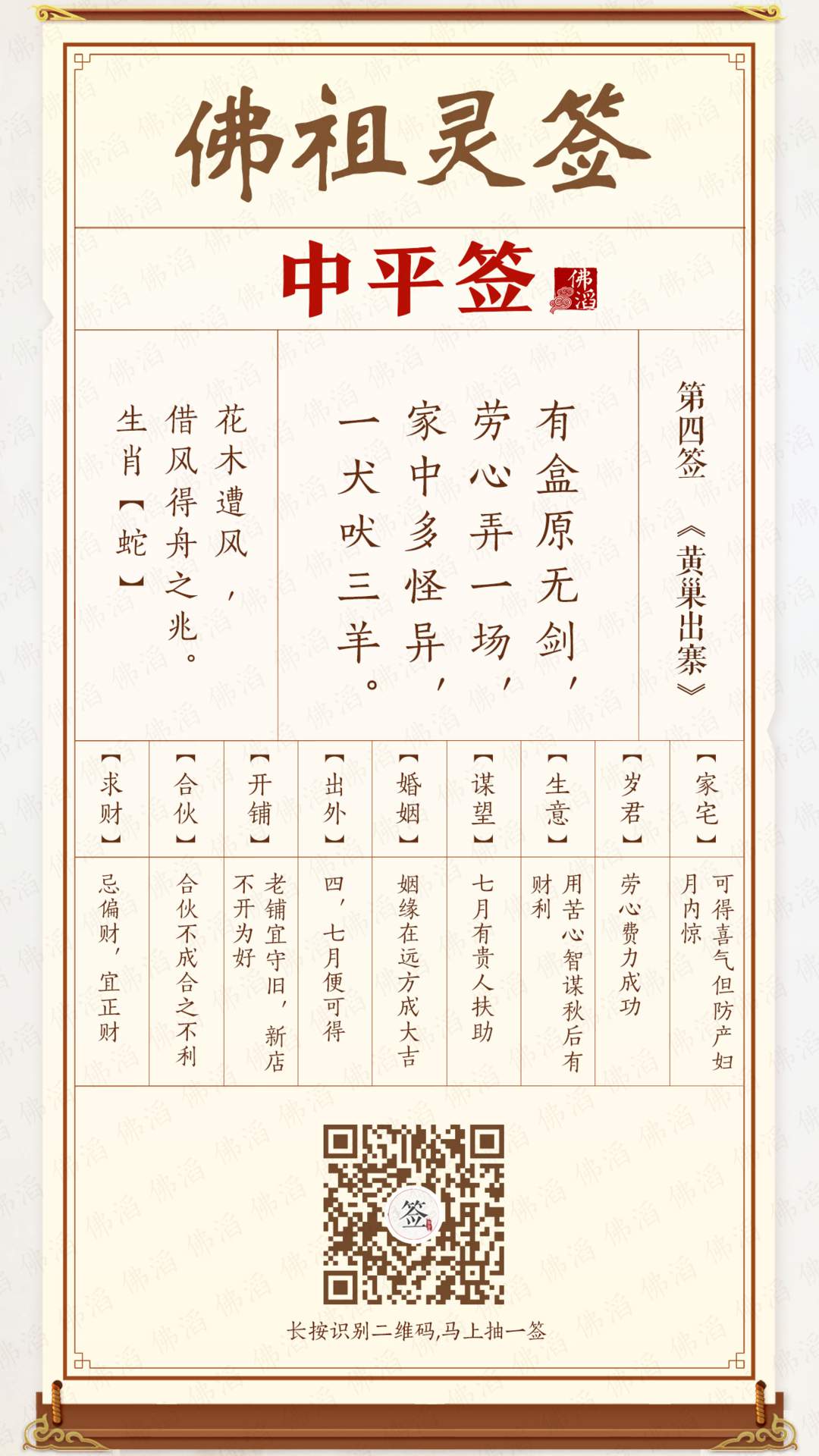 佛祖灵签 第四签 【中平签】