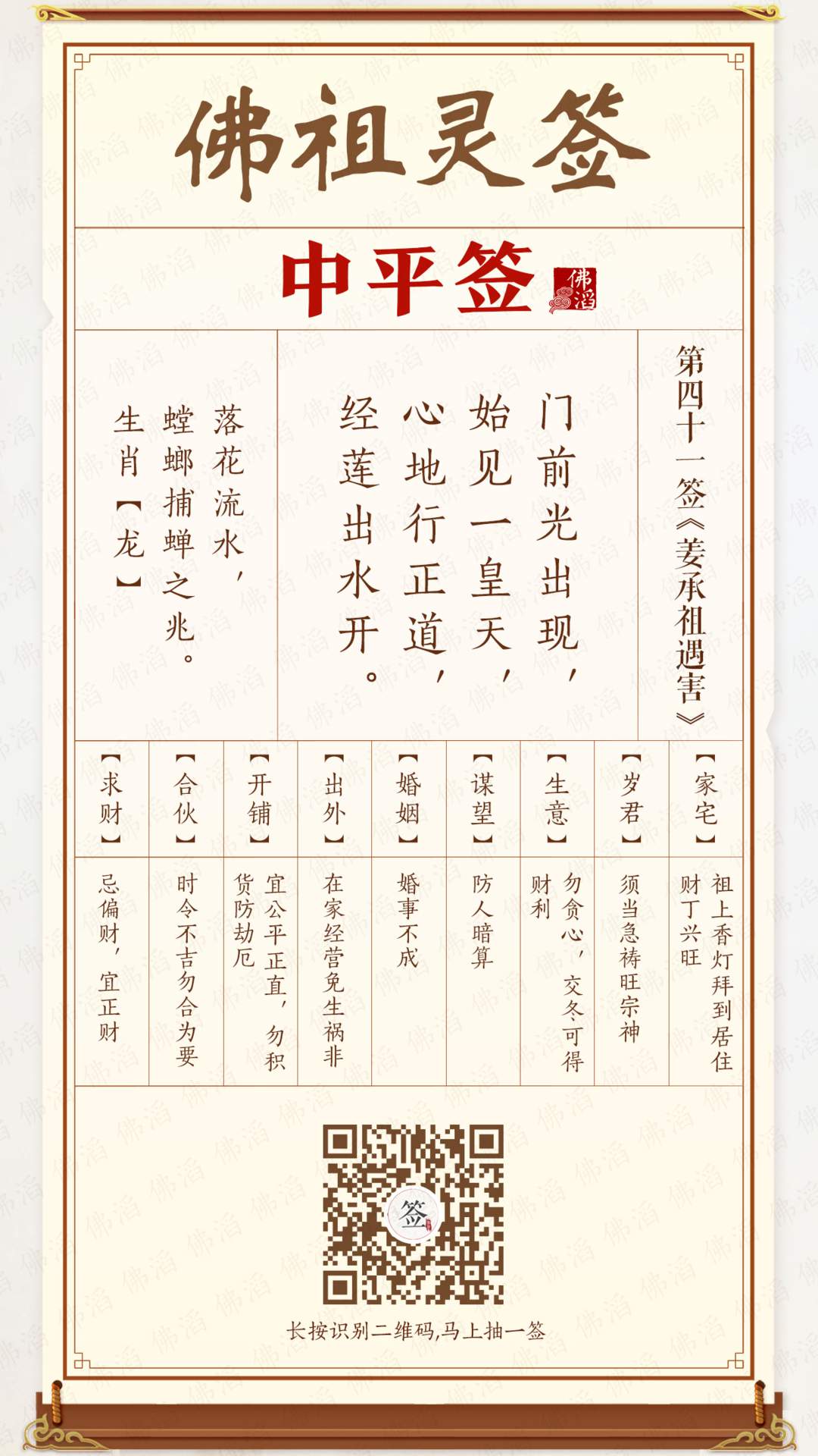 佛祖灵签 第四十一签 【中平签】