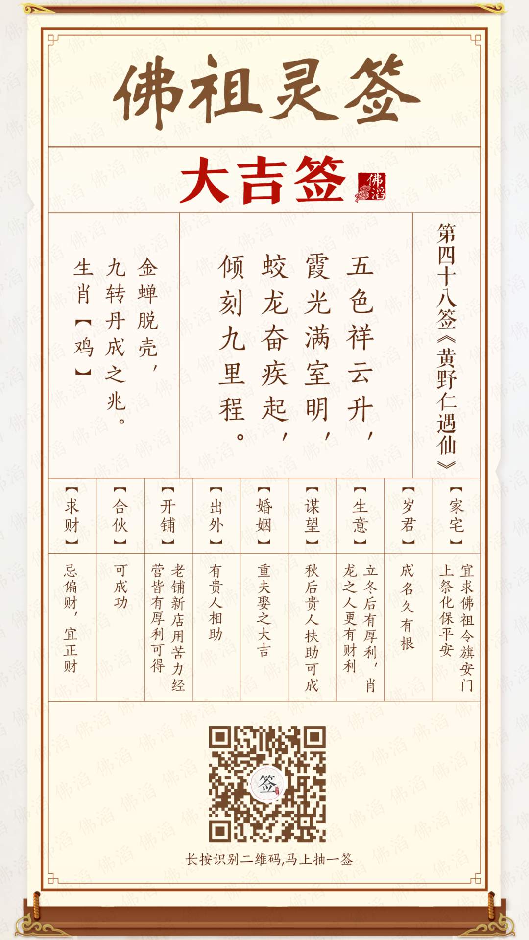 佛祖灵签 第四十八签 【大吉签】