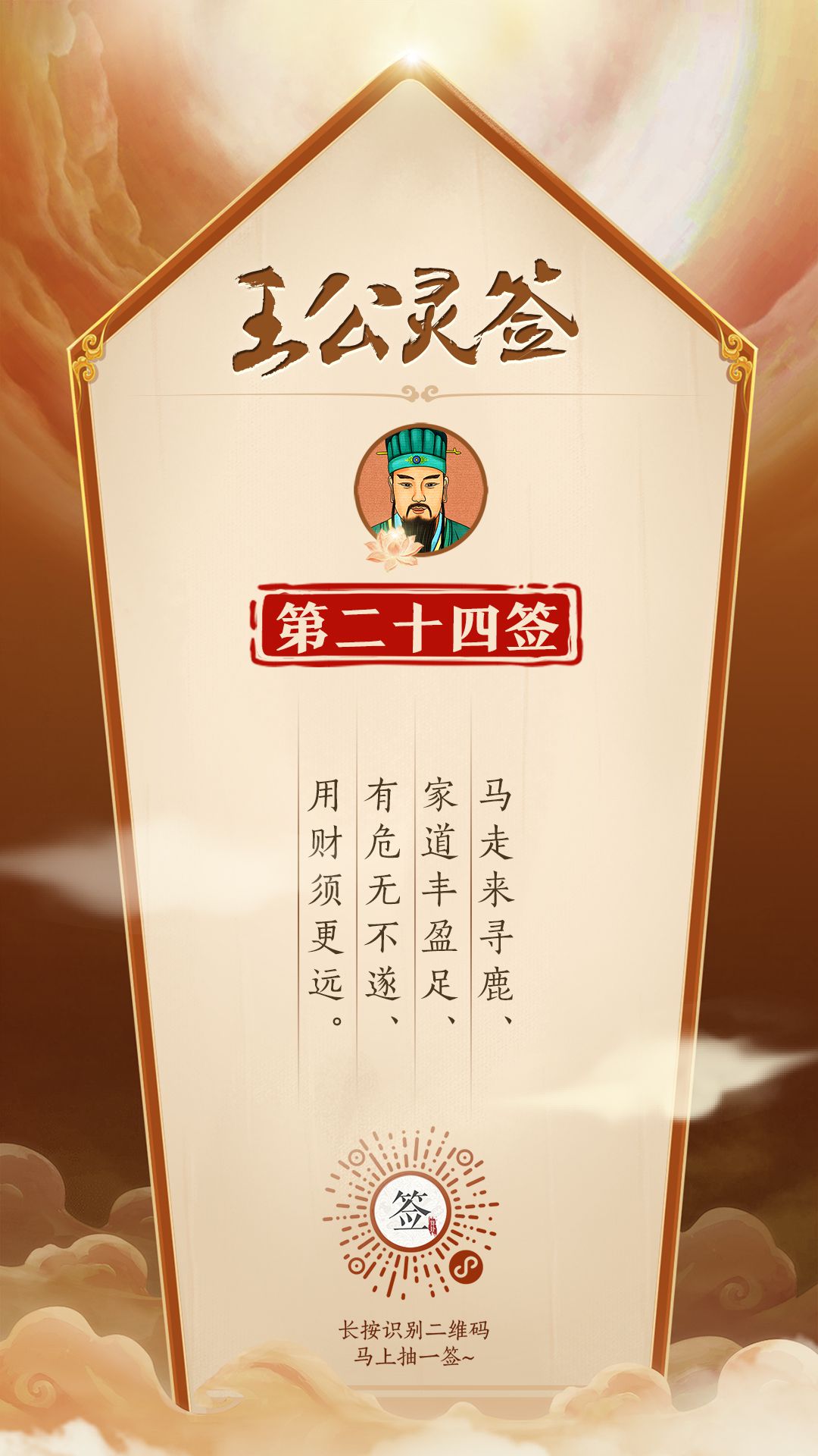 马走来寻鹿、家道丰盈足、有危无不遂、用财须更远。