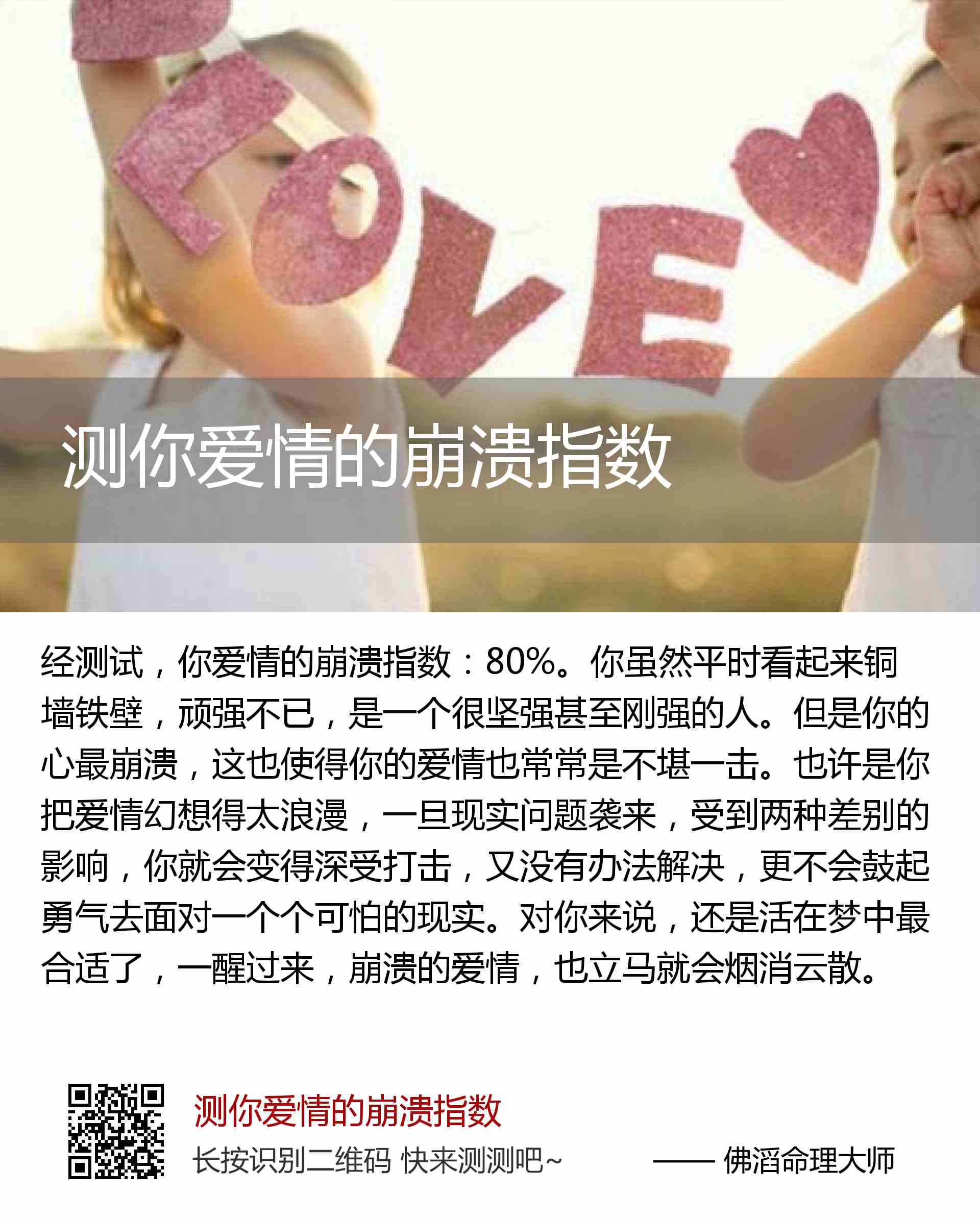 你爱情的崩溃指数:80%。