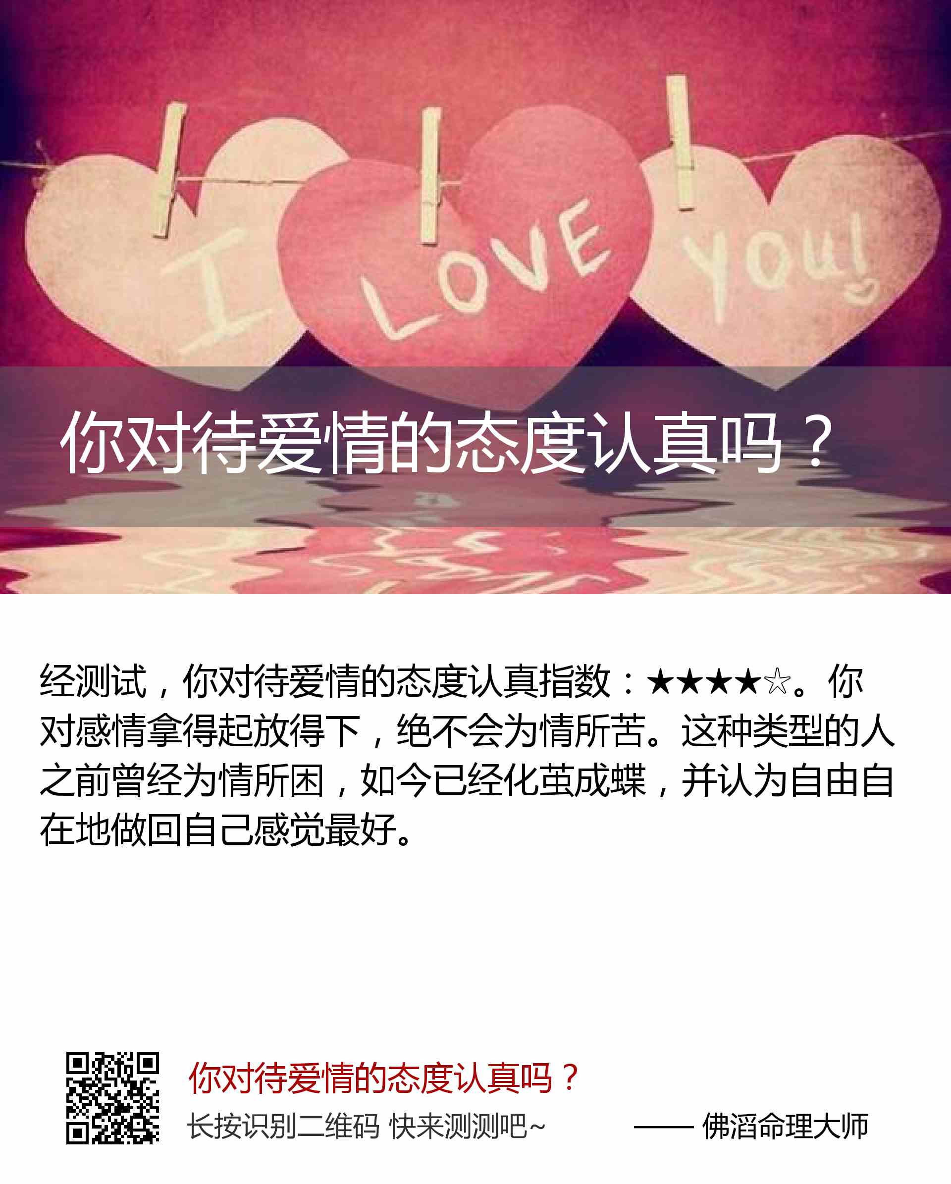 你对待爱情的态度认真指数:★★★★☆。