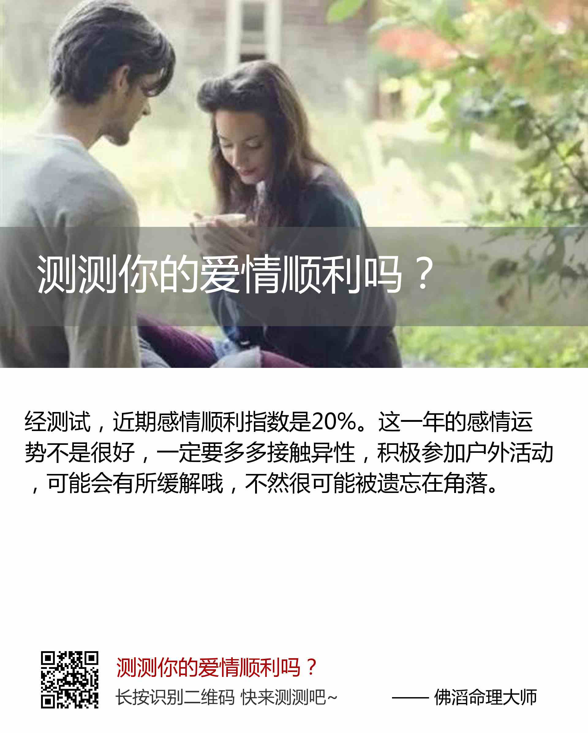 这一年的感情运势不是很好,一定要多多接触异性,积极参加户外活动,可能会有所缓解哦,不然很可能被遗忘在角落。