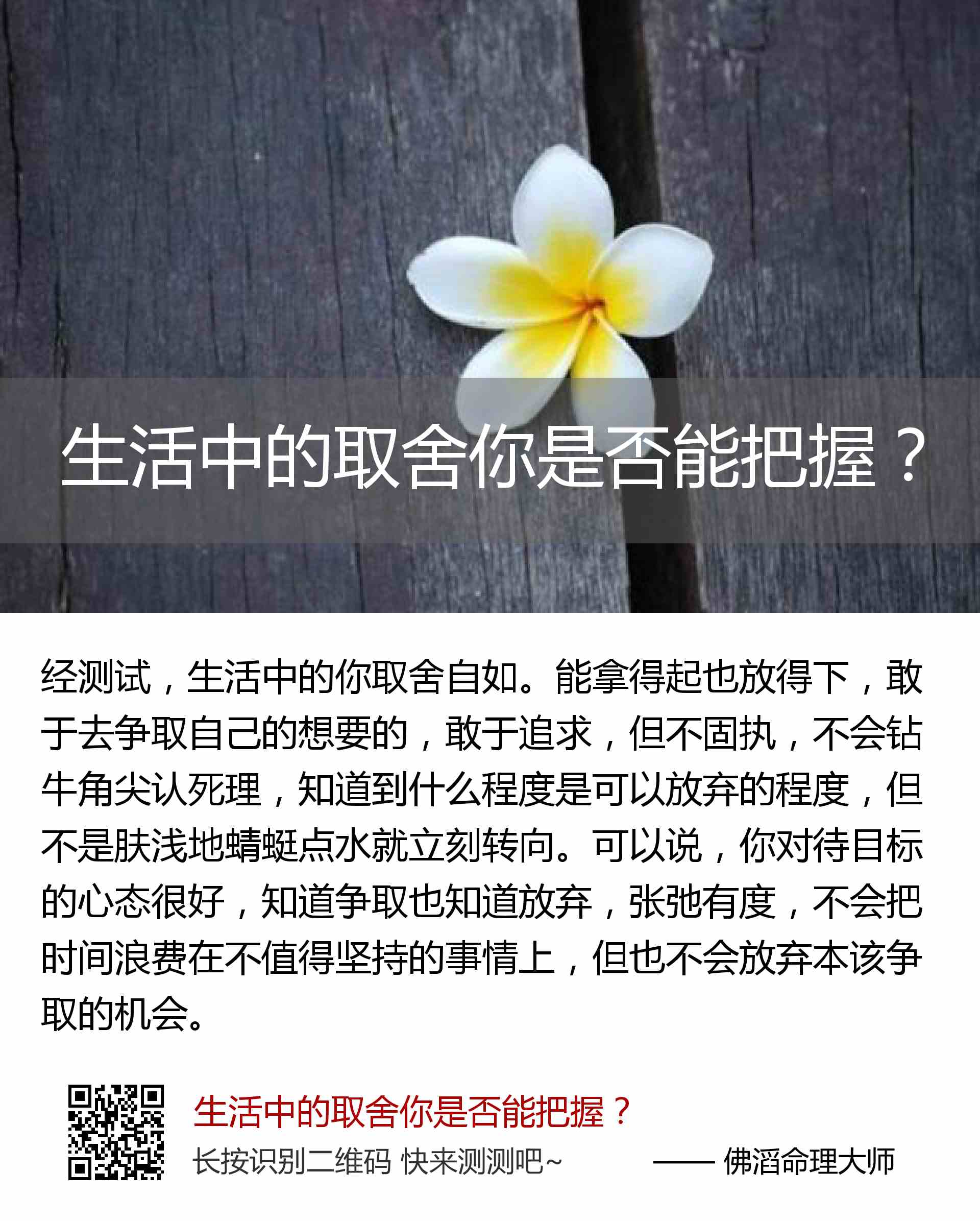 能拿得起也放得下,敢于去争取自己的想要的,敢于追求,但不固执,不会钻牛角尖认死理,知道到什么程度是可以放弃的程度,但不是肤浅地蜻蜓点水就立刻转向。可以说,你对待目标的心态很好,知道争取也知道放弃,张弛有度,不会把时间浪费在不值得坚持的事情上,但也不会放弃本该争取的机会。