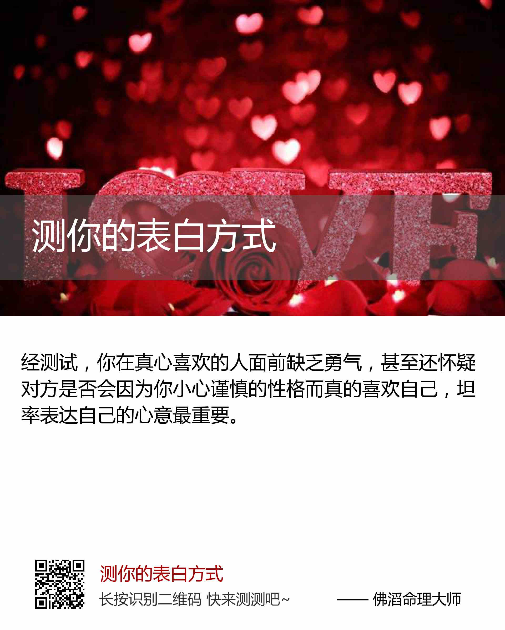 你在真心喜欢的人面前缺乏勇气,甚至还怀疑对方是否会因为你小心谨慎的性格而真的喜欢自己,坦率表达自己的心意最重要。