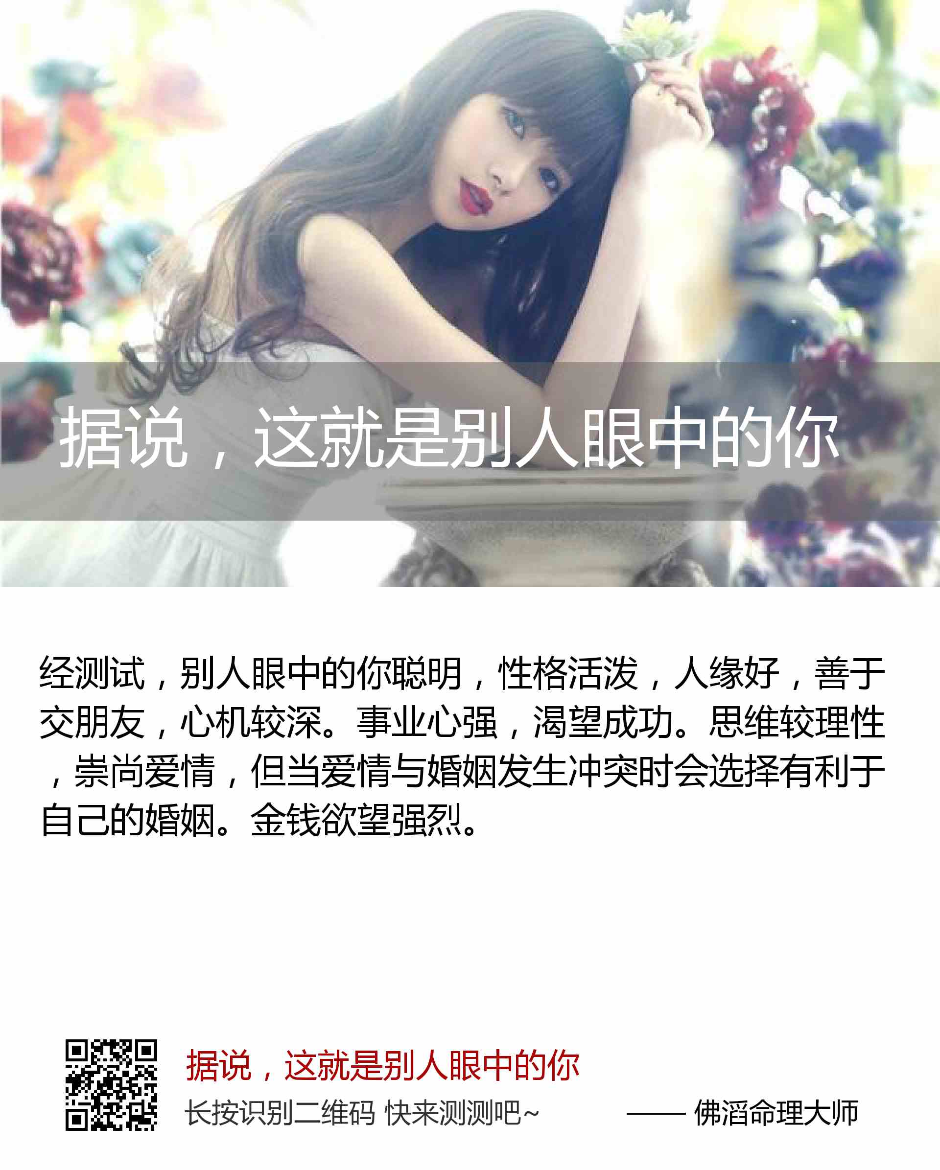 别人眼中的你聪明,性格活泼,人缘好,善于交朋友,心机较深。