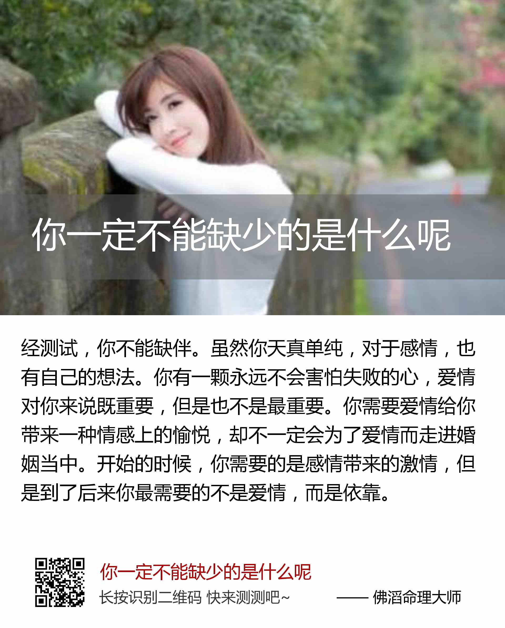 虽然你天真单纯,对于感情,也有自己的想法。你有一颗永远不会害怕失败的心,爱情对你来说既重要,但是也不是最重要。你需要爱情给你带来一种情感上的愉悦,却不一定会为了爱情而走进婚姻当中。开始的时候,你需要的是感情带来的激情,但是到了后来你最需要的不是爱情,而是依靠。
