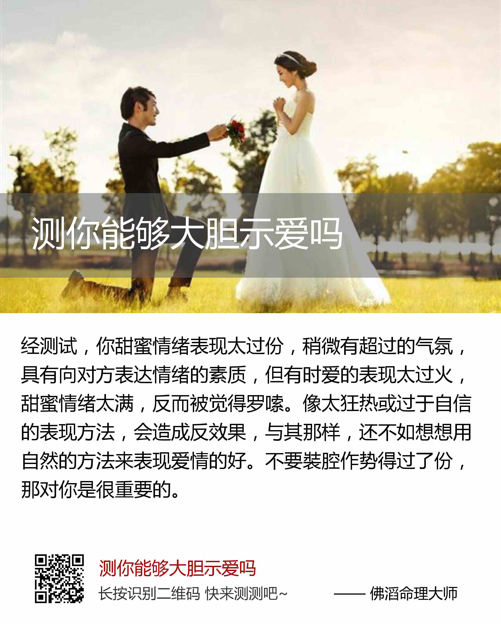 你甜蜜情绪表现太过份,稍微有超过的气氛,具有向对方表达情绪的素质,但有时爱的表现太过火,甜蜜情绪太满,反而被觉得罗嗦。