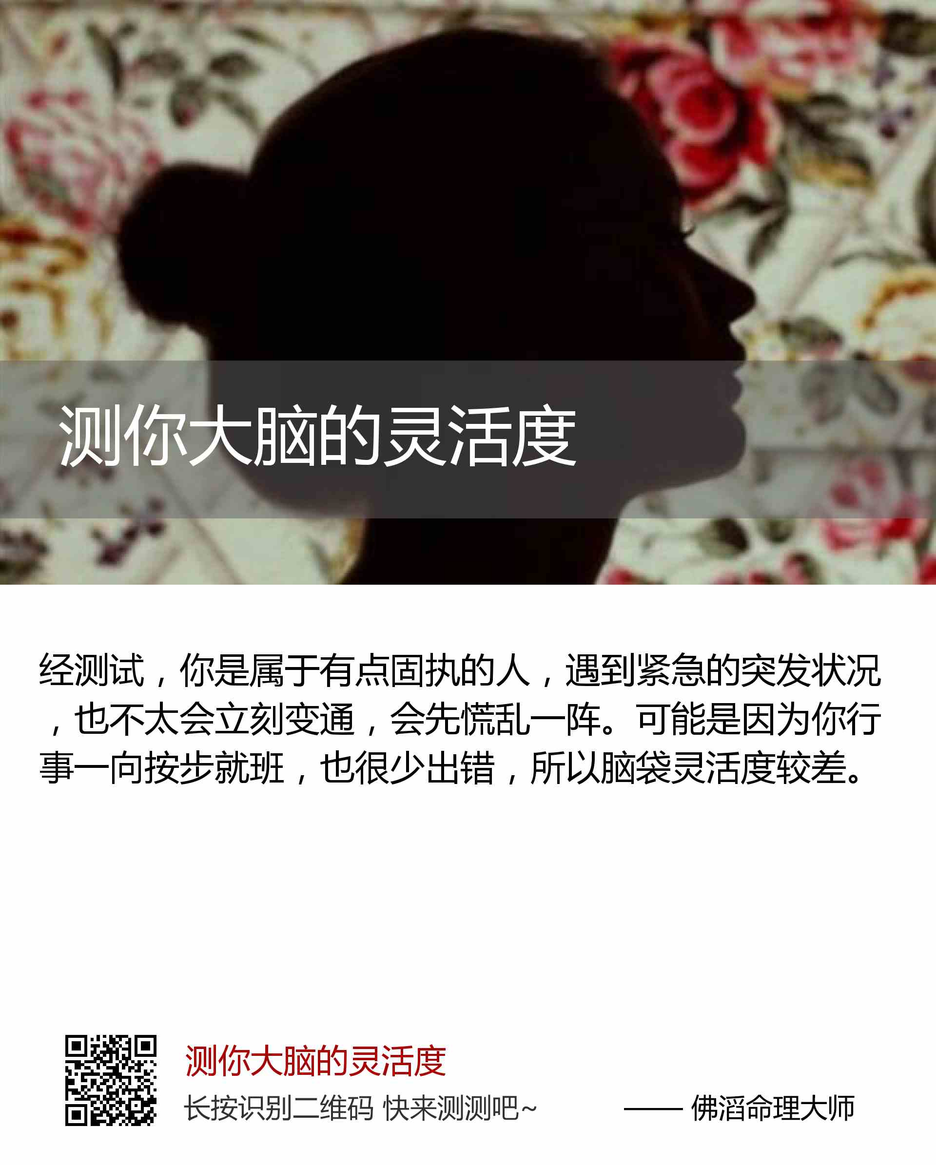 可能是因为你行事一向按步就班,也很少出错,所以脑袋灵活度较差。