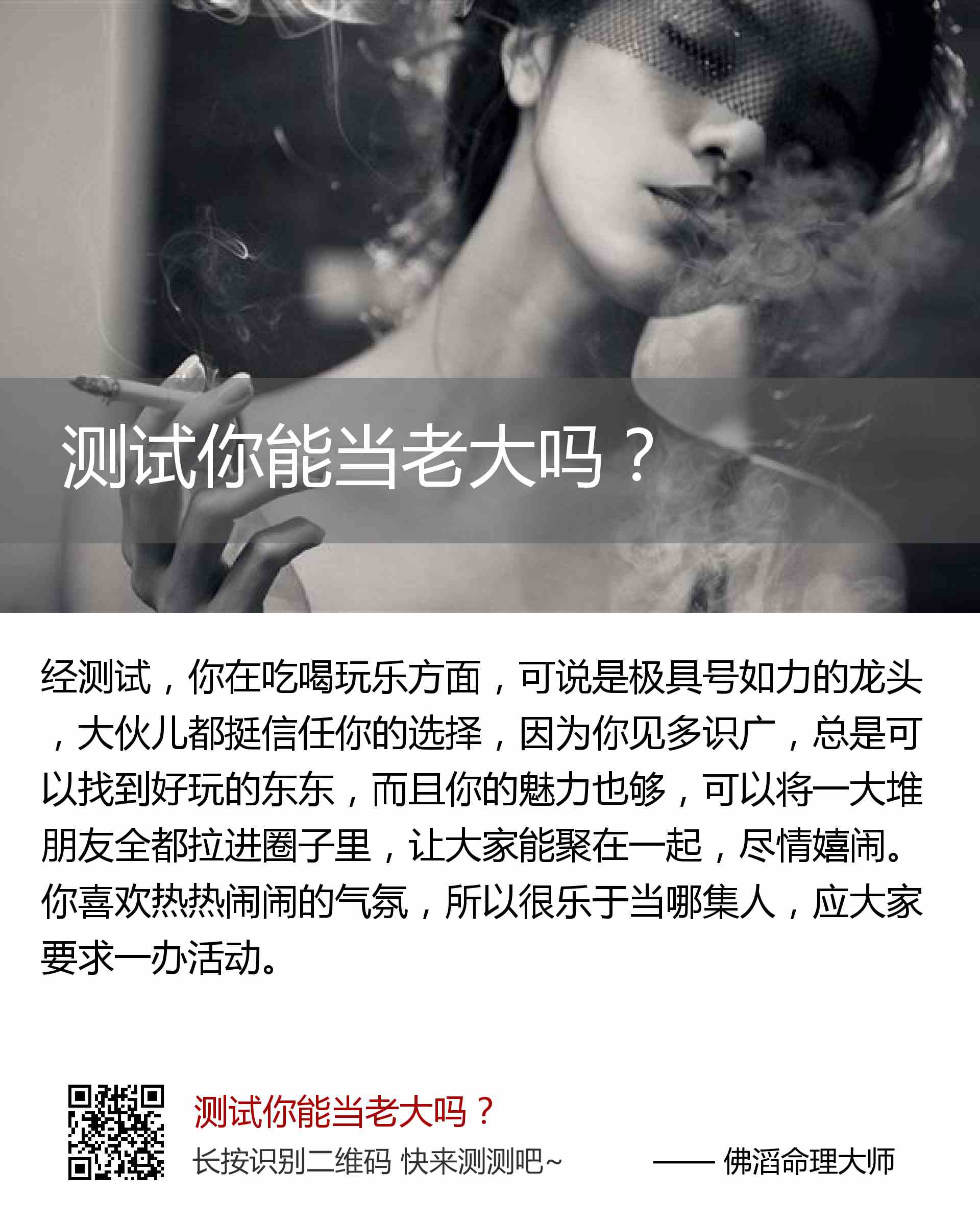 你在吃喝玩乐方面,可说是极具号如力的龙头,大伙儿都挺信任你的选择,因为你见多识广,总是可以找到好玩的东东,而且你的魅力也够,可以将一大堆朋友全都拉进圈子里,让大家能聚在一起,尽情嬉闹。