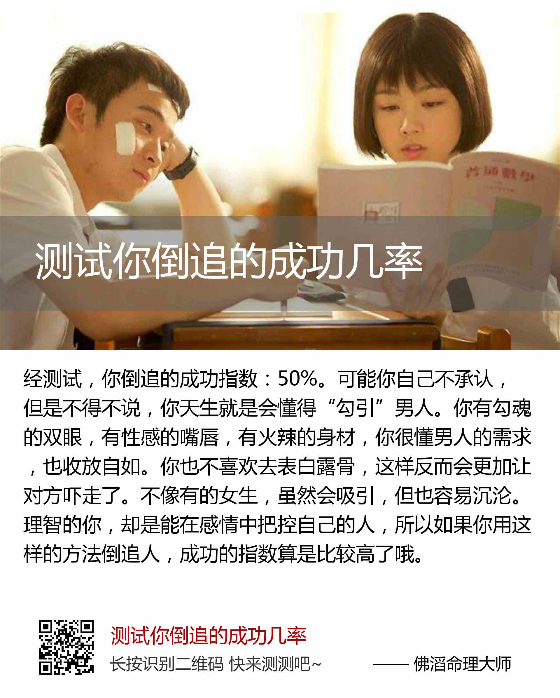 可能你自己不承认,但是不得不说,你天生就是会懂得“勾引”男人。你有勾魂的双眼,有性感的嘴唇,有火辣的身材,你很懂男人的需求,也收放自如。你也不喜欢去表白露骨,这样反而会更加让对方吓走了。不像有的女生,虽然会吸引,但也容易沉沦。理智的你,却是能在感情中把控自己的人,所以如果你用这样的方法倒追人,成功的指数算是比较高了哦。