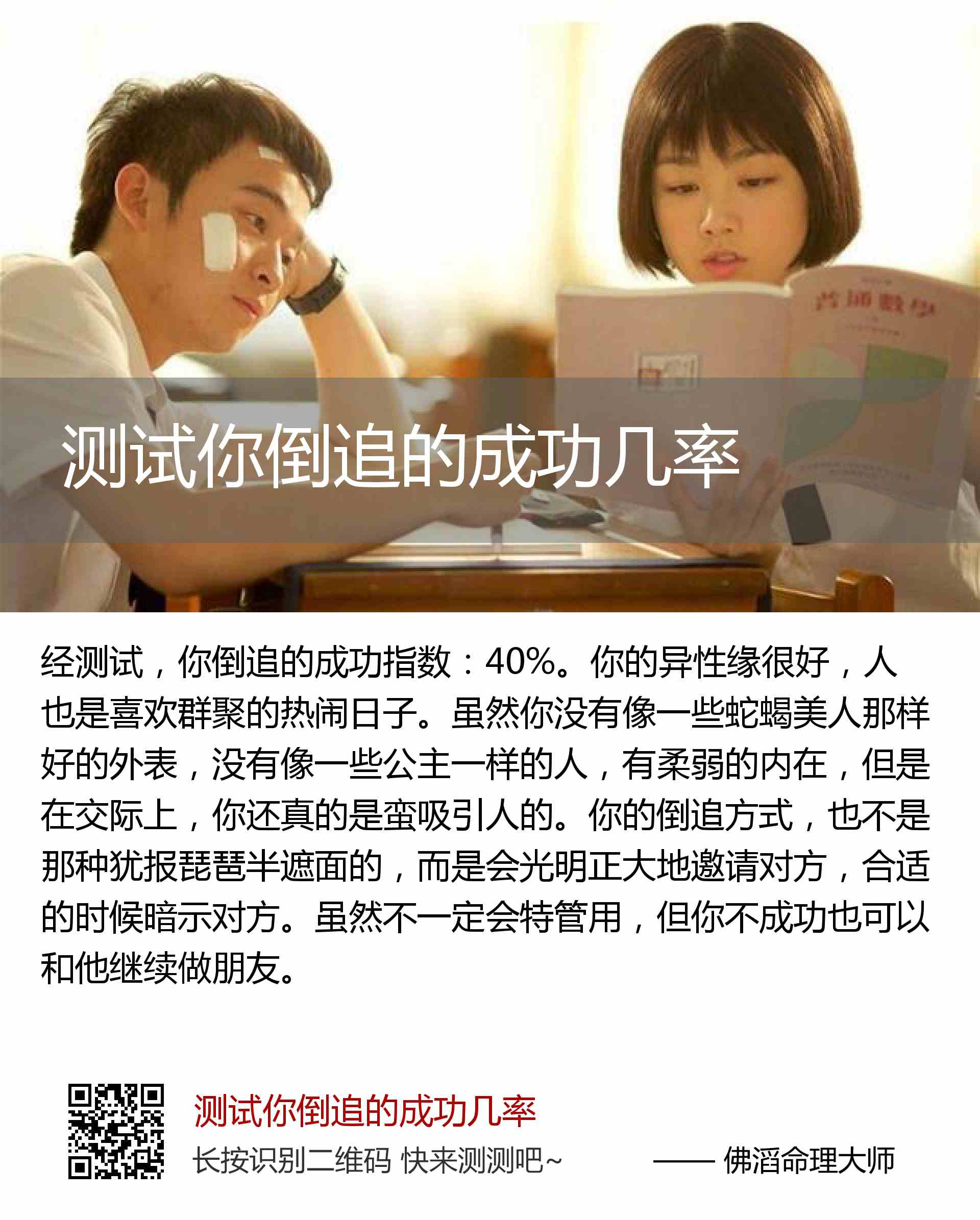 你倒追的成功指数:40%。