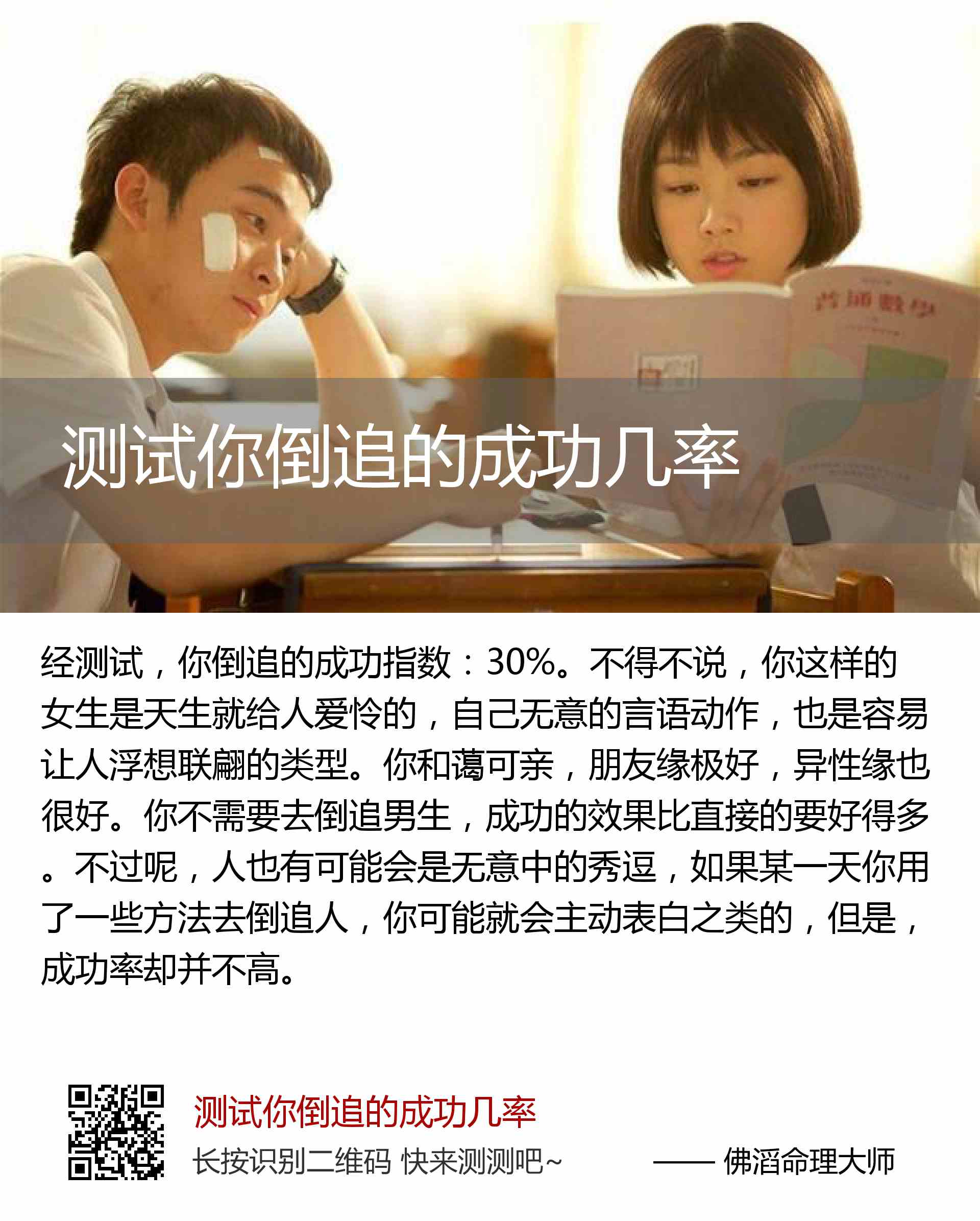 你倒追的成功指数:30%。