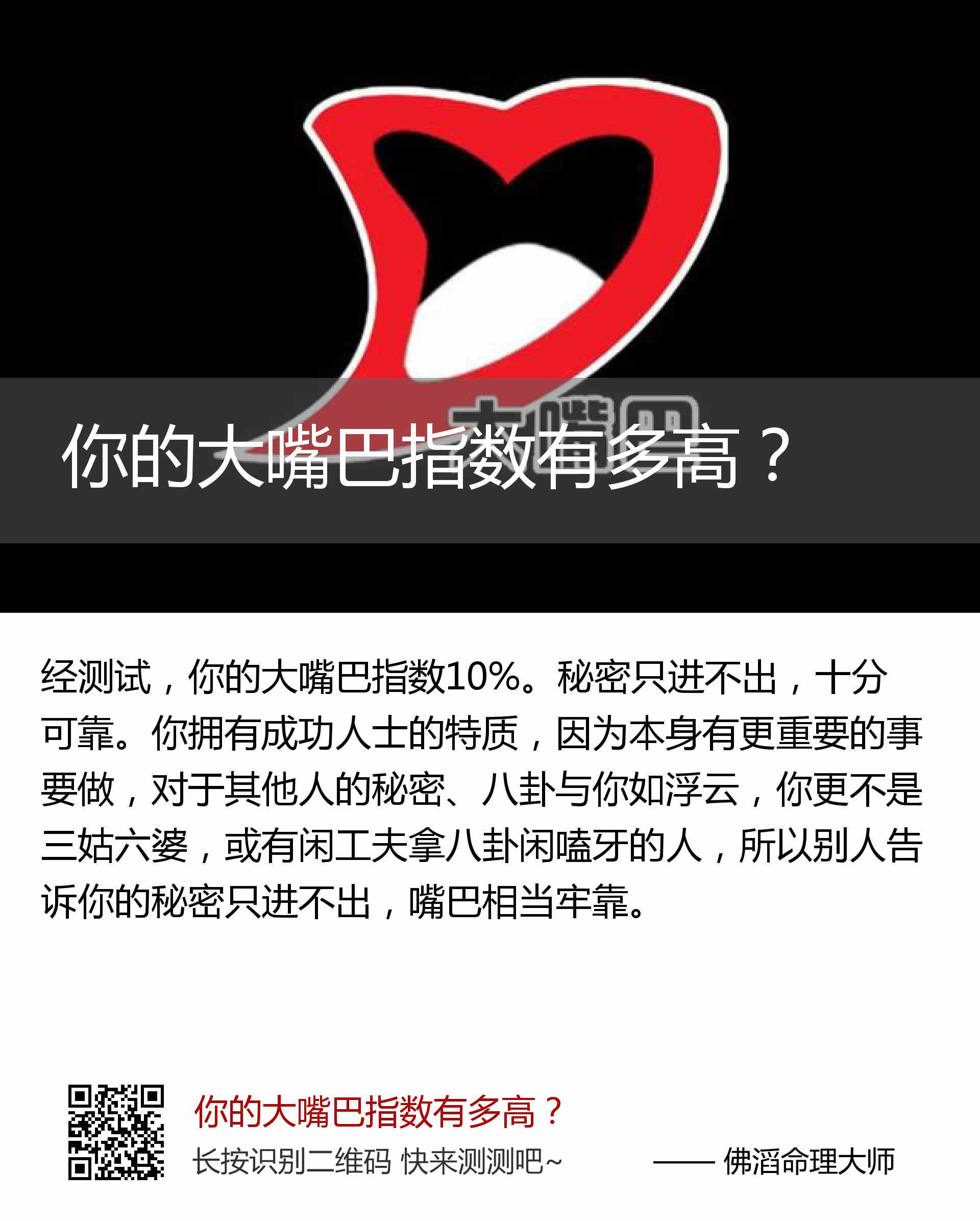秘密只进不出,十分可靠。你拥有成功人士的特质,因为本身有更重要的事要做,对于其他人的秘密、八卦与你如浮云,你更不是三姑六婆,或有闲工夫拿八卦闲嗑牙的人,所以别人告诉你的秘密只进不出,嘴巴相当牢靠。