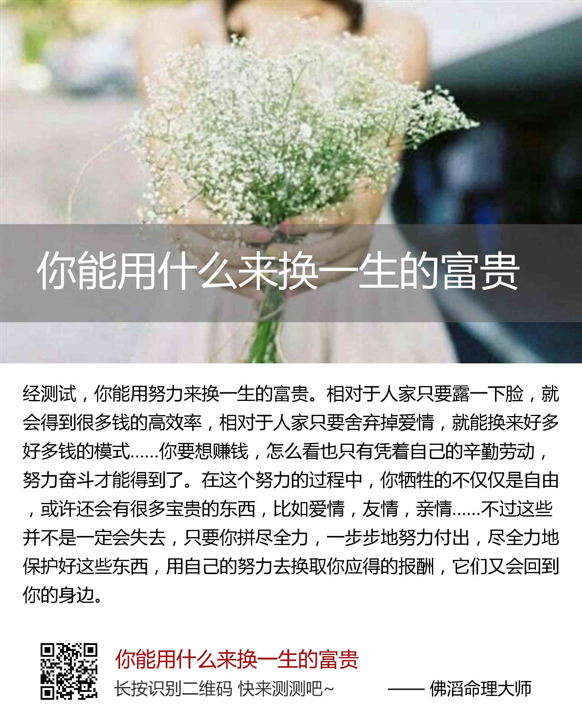 相对于人家只要露一下脸,就会得到很多钱的高效率,相对于人家只要舍弃掉爱情,就能换来好多好多钱的模式……你要想赚钱,怎么看也只有凭着自己的辛勤劳动,努力奋斗才能得到了。在这个努力的过程中,你牺牲的不仅仅是自由,或许还会有很多宝贵的东西,比如爱情,友情,亲情……不过这些并不是一定会失去,只要你拼尽全力,一步步地努力付出,尽全力地保护好这些东西,用自己的努力去换取你应得的报酬,它们又会回到你的身边。