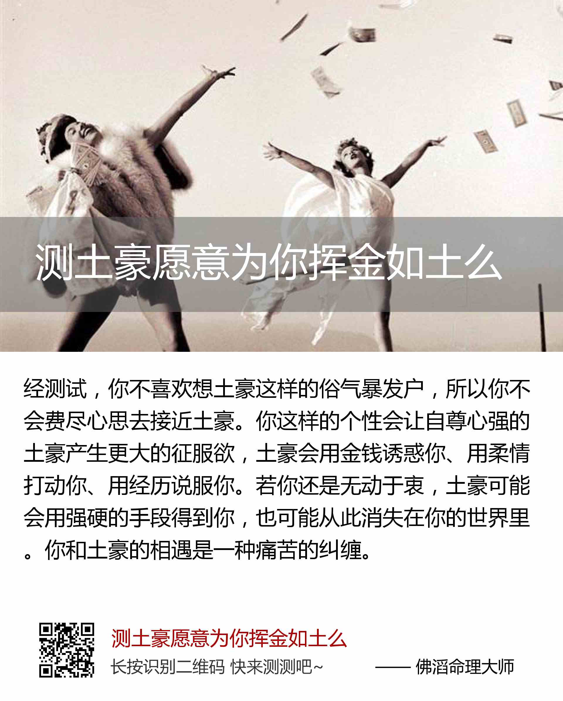 > 测土豪愿意为你挥金如土么
