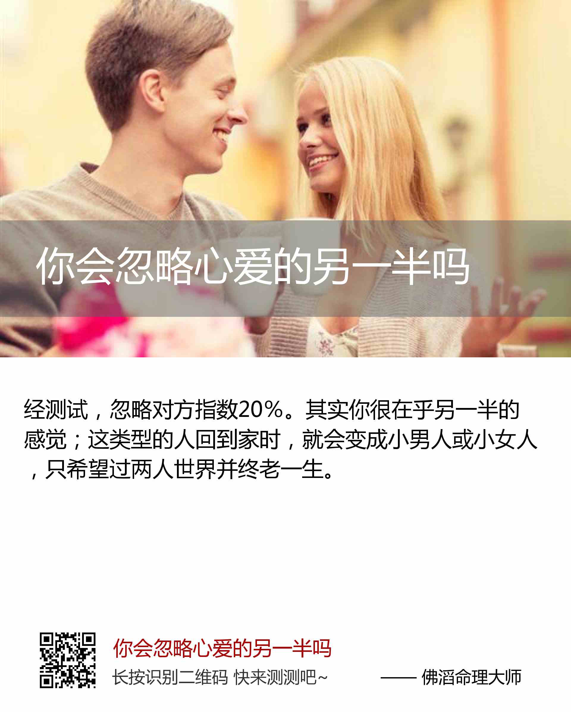 其实你很在乎另一半的感觉;这类型的人回到家时,就会变成小男人或小女人,只希望过两人世界并终老一生。