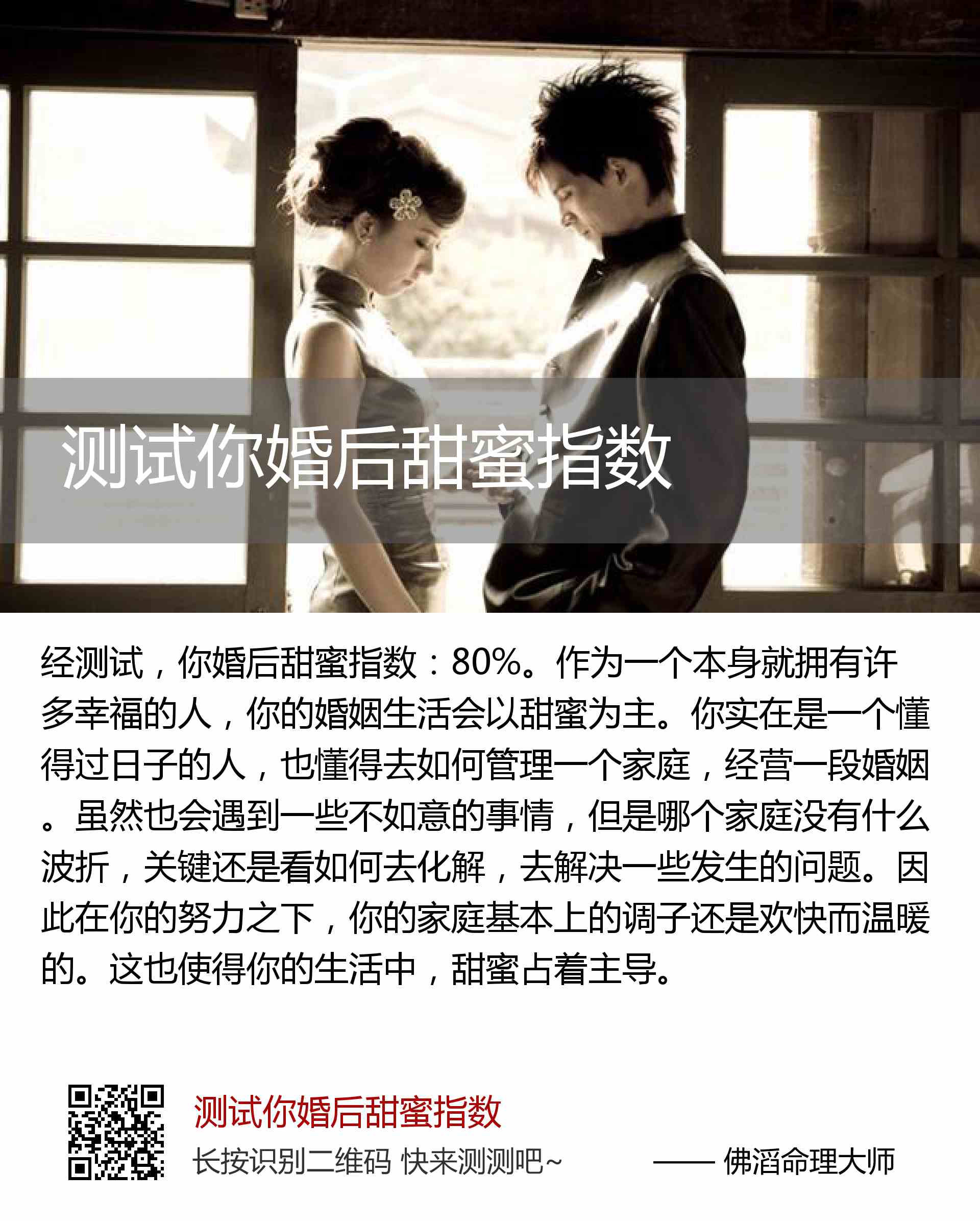 作为一个本身就拥有许多幸福的人,你的婚姻生活会以甜蜜为主。你实在是一个懂得过日子的人,也懂得去如何管理一个家庭,经营一段婚姻。虽然也会遇到一些不如意的事情,但是哪个家庭没有什么波折,关键还是看如何去化解,去解决一些发生的问题。因此在你的努力之下,你的家庭基本上的调子还是欢快而温暖的。这也使得你的生活中,甜蜜占着主导。