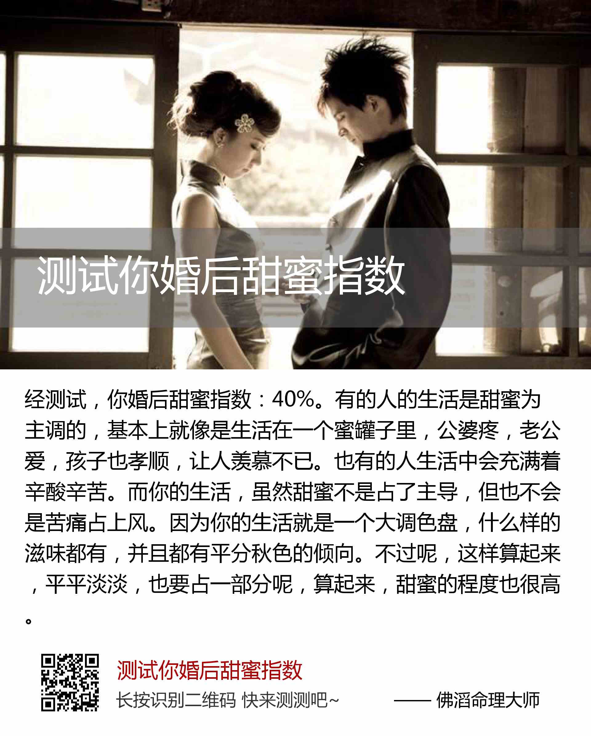 你婚后甜蜜指数:40%。