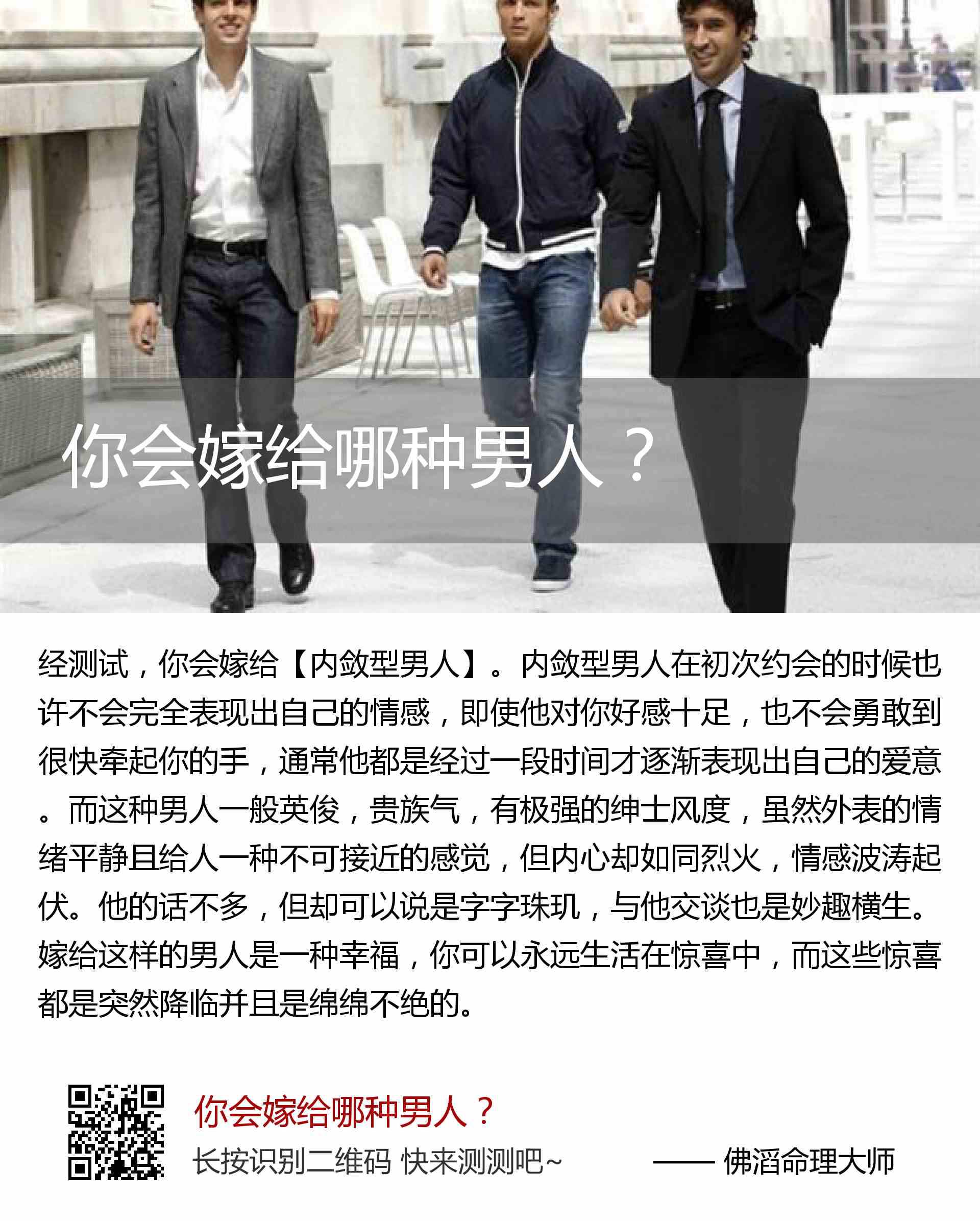 你会嫁给【内敛型男人】。