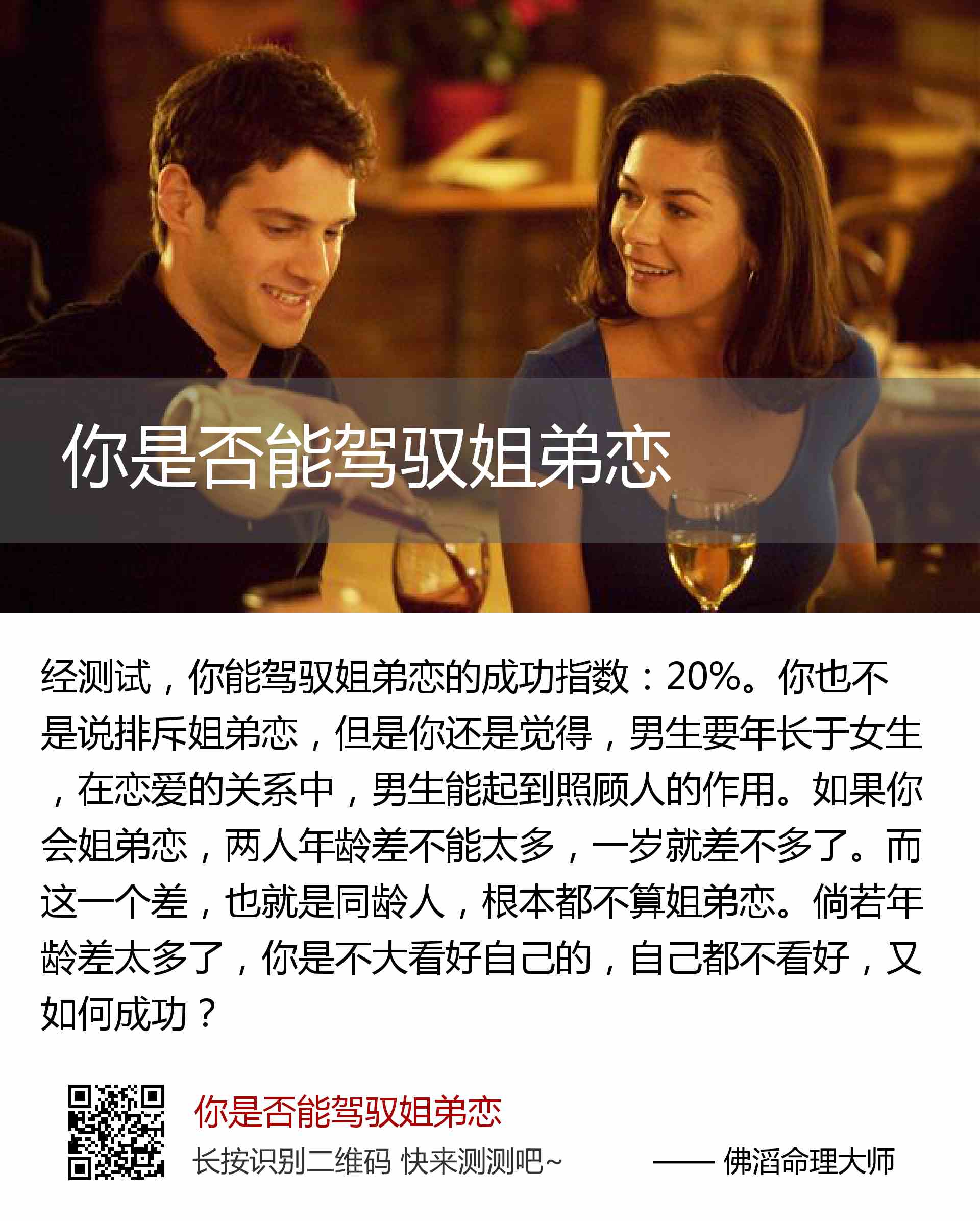 你也不是说排斥姐弟恋,但是你还是觉得,男生要年长于女生,在恋爱的关系中,男生能起到照顾人的作用。如果你会姐弟恋,两人年龄差不能太多,一岁就差不多了。而这一个差,也就是同龄人,根本都不算姐弟恋。倘若年龄差太多了,你是不大看好自己的,自己都不看好,又如何成功?