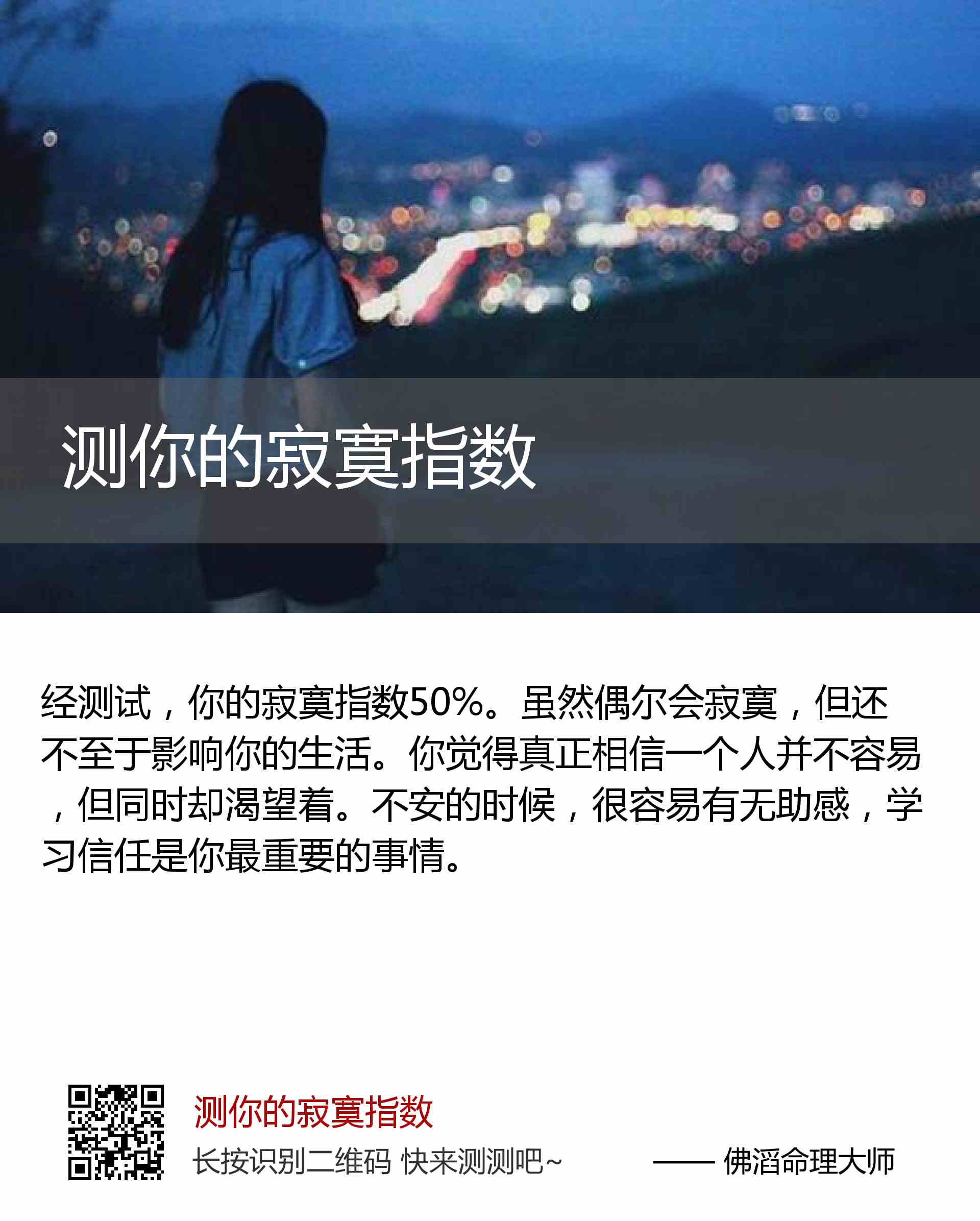 你的寂寞指数50%。