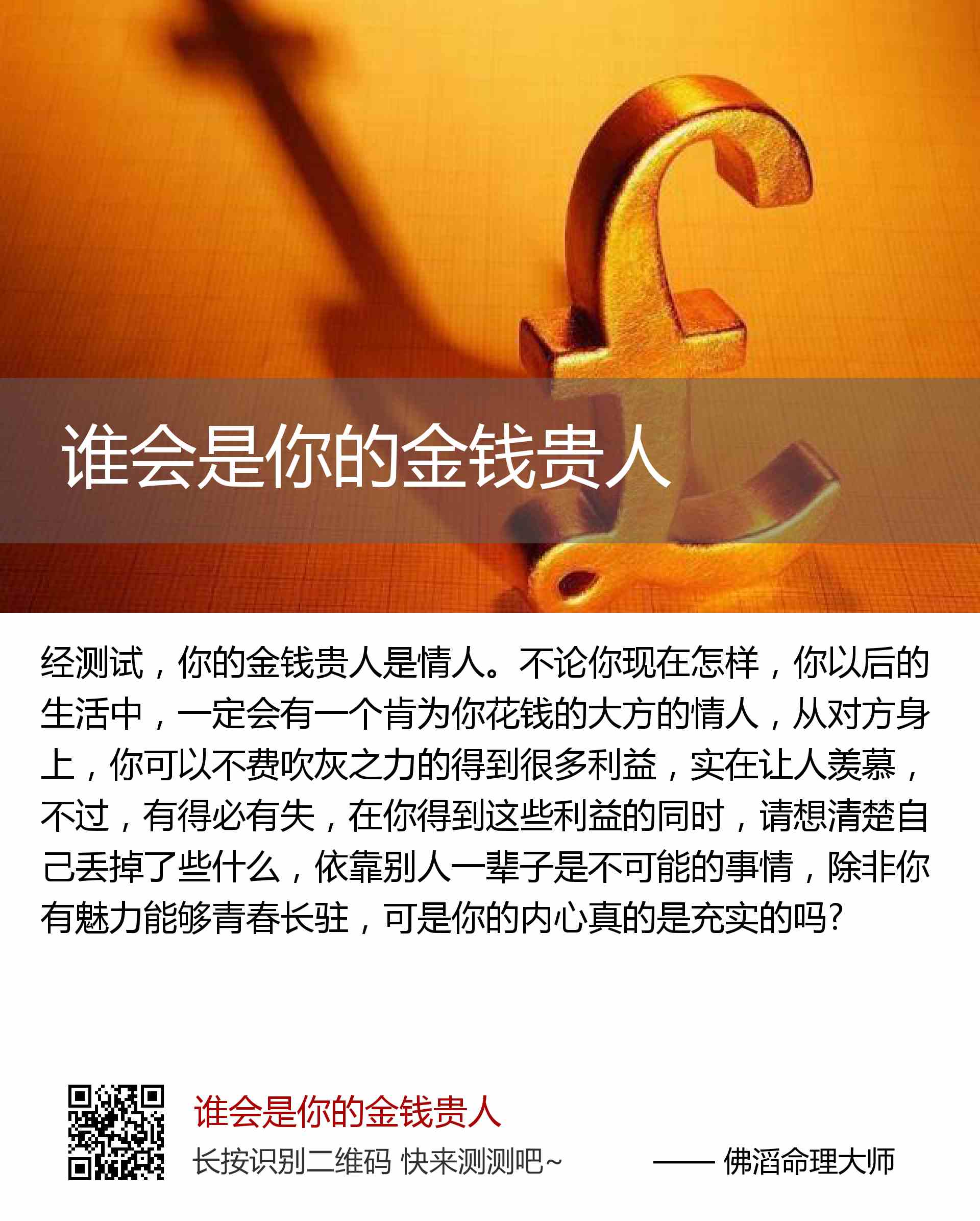 不论你现在怎样,你以后的生活中,一定会有一个肯为你花钱的大方的情人,从对方身上,你可以不费吹灰之力的得到很多利益,实在让人羡慕,不过,有得必有失,在你得到这些利益的同时,请想清楚自己丢掉了些什么,依靠别人一辈子是不可能的事情,除非你有魅力能够青春长驻,可是你的内心真的是充实的吗?