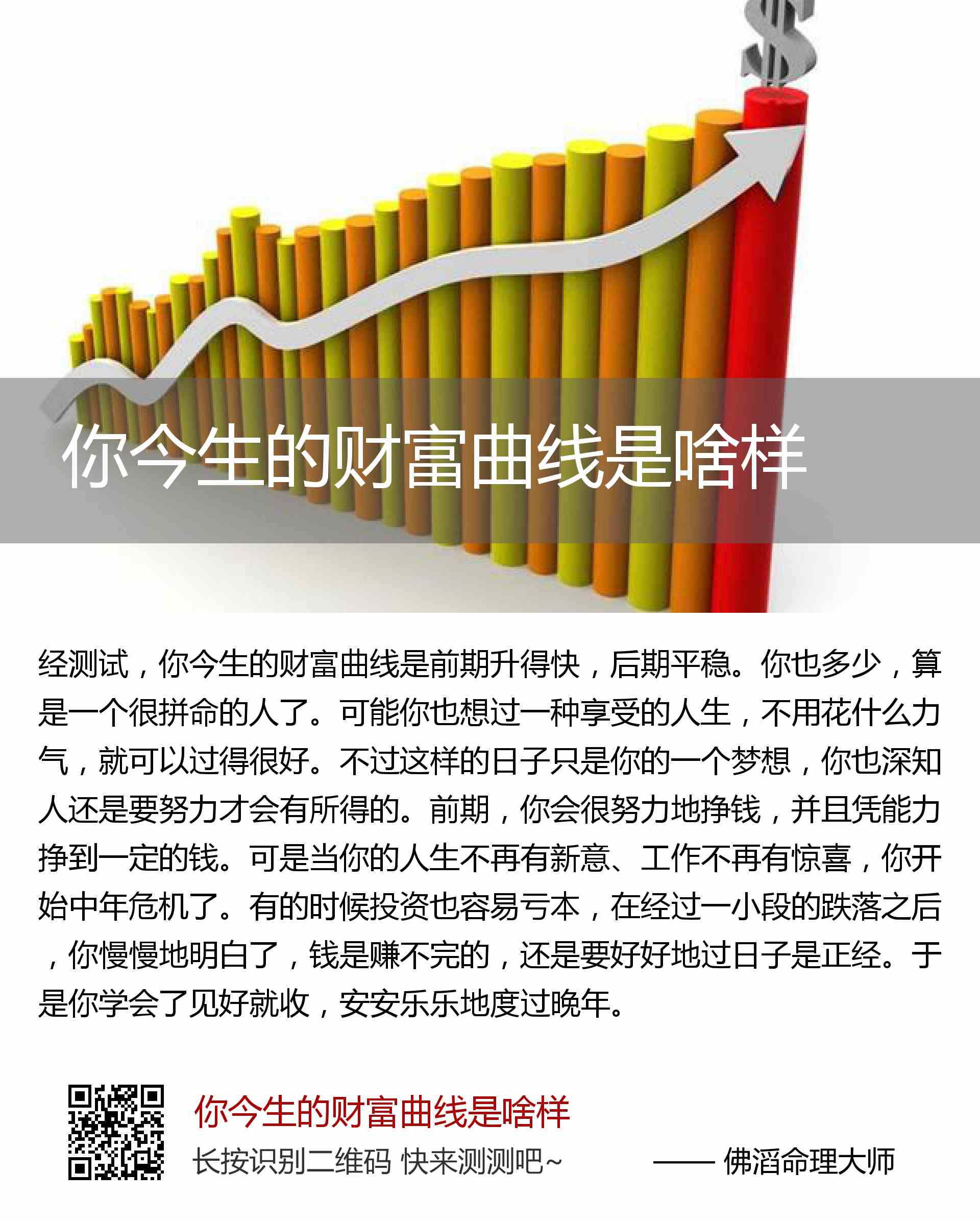 你也多少,算是一个很拼命的人了。可能你也想过一种享受的人生,不用花什么力气,就可以过得很好。不过这样的日子只是你的一个梦想,你也深知人还是要努力才会有所得的。前期,你会很努力地挣钱,并且凭能力挣到一定的钱。可是当你的人生不再有新意、工作不再有惊喜,你开始中年危机了。有的时候投资也容易亏本,在经过一小段的跌落之后,你慢慢地明白了,钱是赚不完的,还是要好好地过日子是正经。于是你学会了见好就收,安安乐乐地度过晚年。