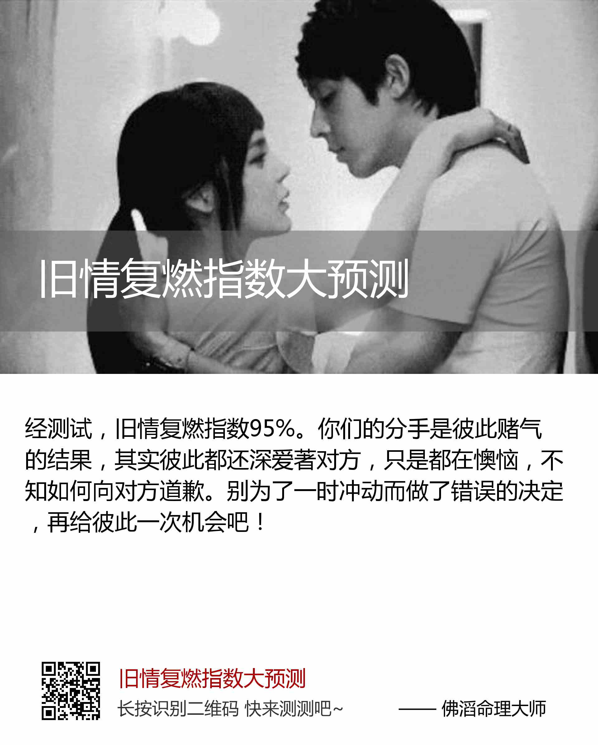 你们的分手是彼此赌气的结果,其实彼此都还深爱著对方,只是都在懊恼,不知如何向对方道歉。别为了一时冲动而做了错误的决定,再给彼此一次机会吧!