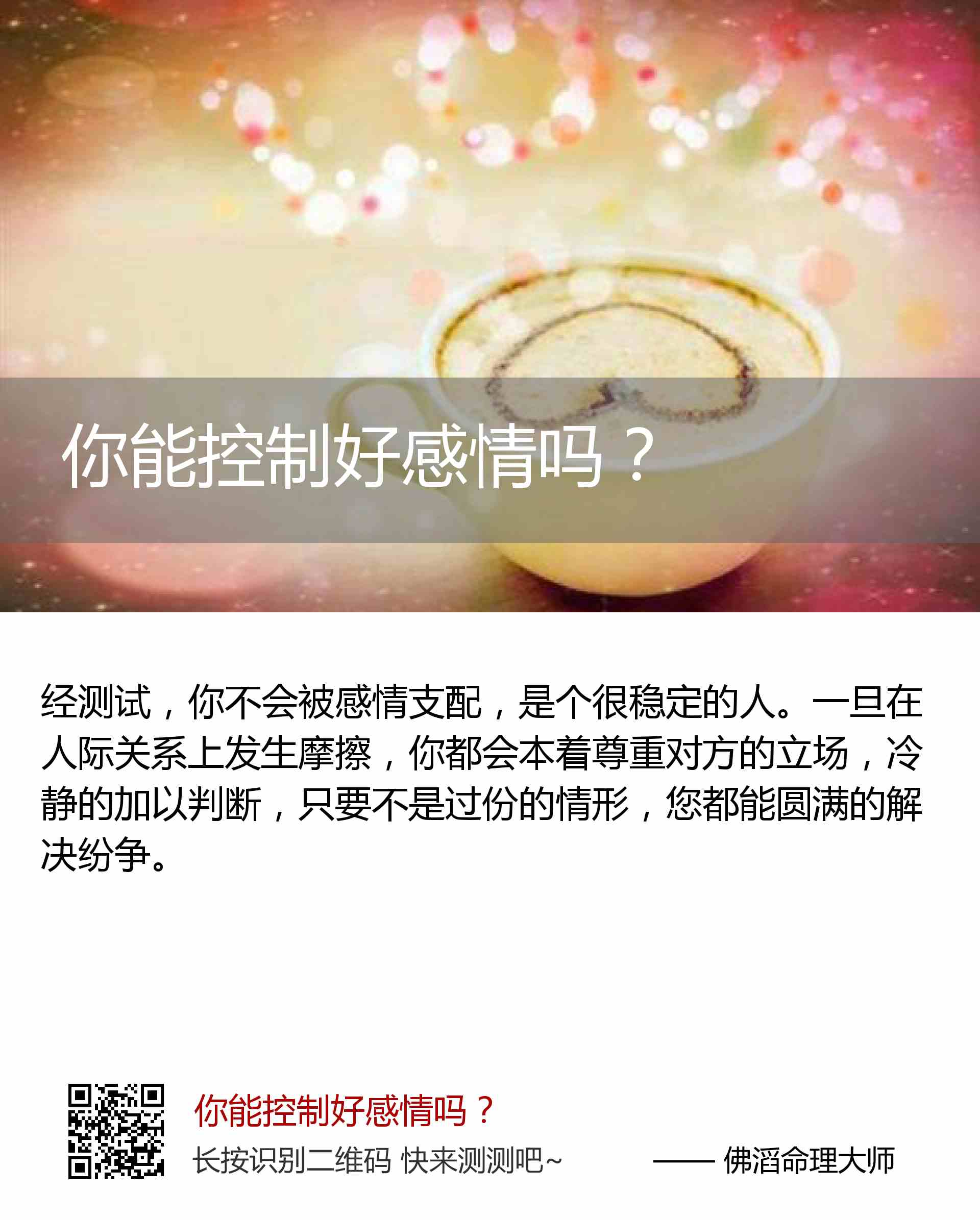 一旦在人际关系上发生摩擦,你都会本着尊重对方的立场,冷静的加以判断,只要不是过份的情形,您都能圆满的解决纷争。