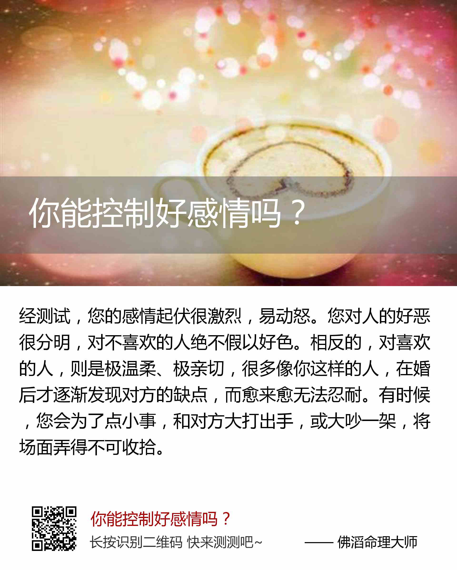 您的感情起伏很激烈,易动怒。
