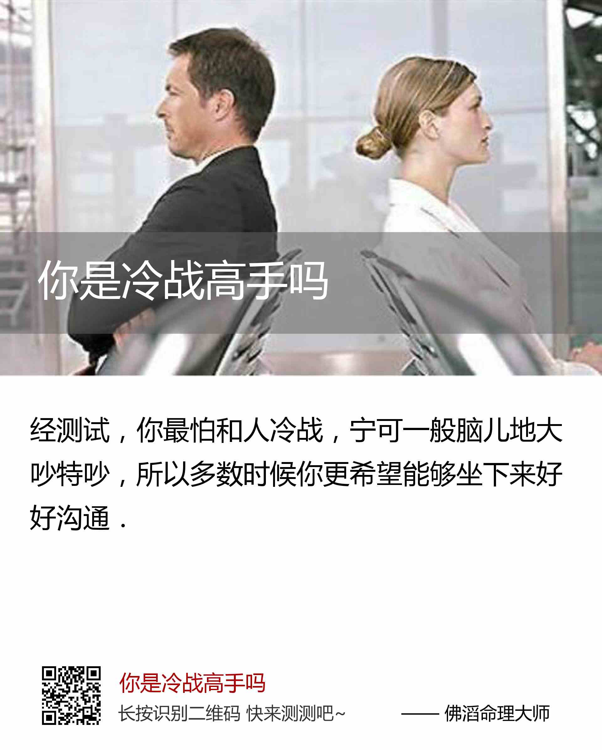 你最怕和人冷战,宁可一般脑儿地大吵特吵,所以多数时候你更希望能够坐下来好