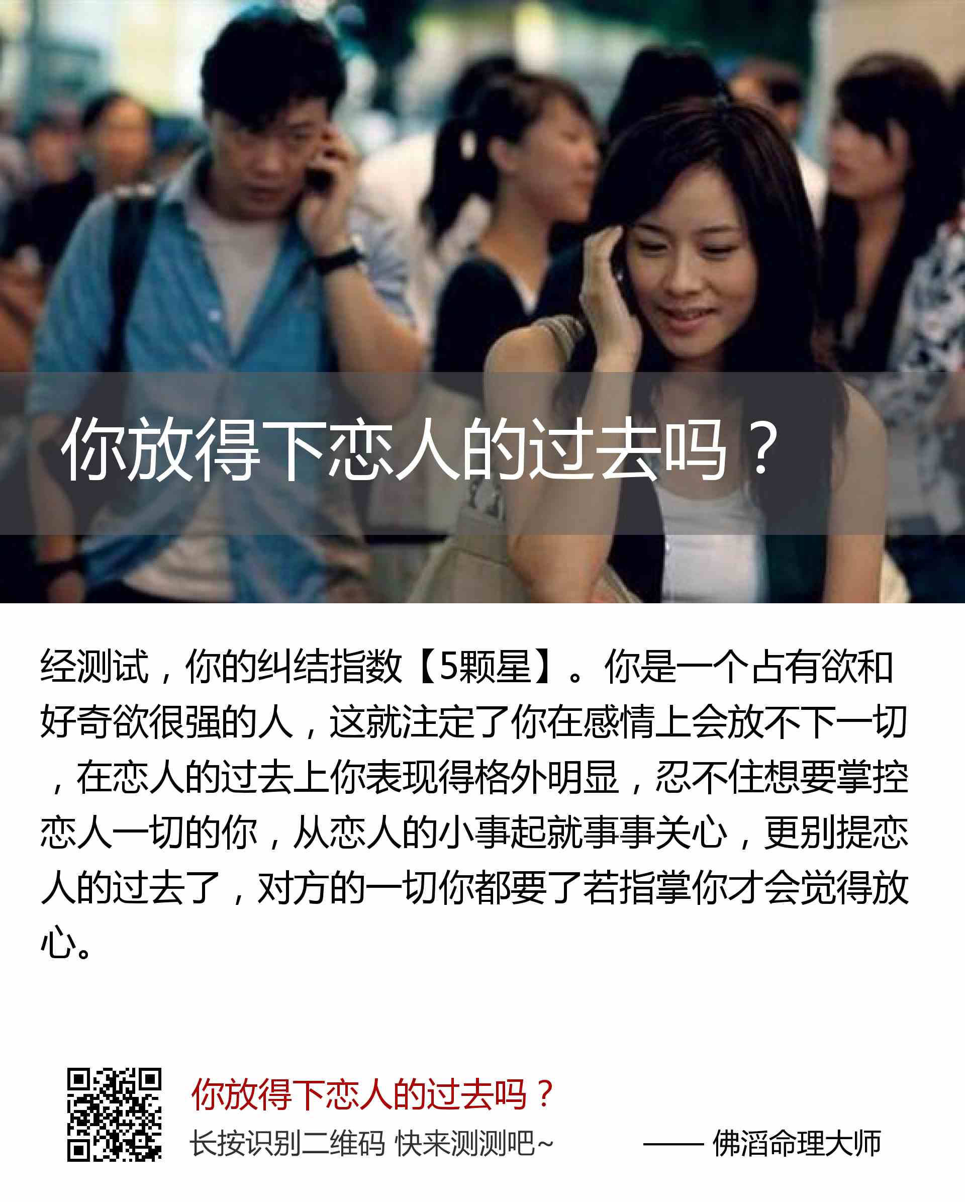 你是一个占有欲和好奇欲很强的人,这就注定了你在感情上会放不下一切,在恋人的过去上你表现得格外明显,忍不住想要掌控恋人一切的你,从恋人的小事起就事事关心,更别提恋人的过去了,对方的一切你都要了若指掌你才会觉得放心。
