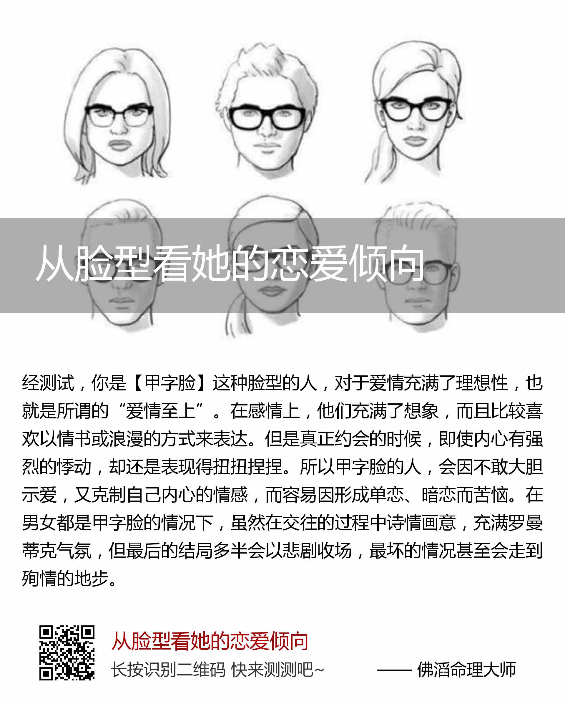 在感情上,他们充满了想象,而且比较喜欢以情书或浪漫的方式来表达。但是真正约会的时候,即使内心有强烈的悸动,却还是表现得扭扭捏捏。所以甲字脸的人,会因不敢大胆示爱,又克制自己内心的情感,而容易因形成单恋、暗恋而苦恼。在男女都是甲字脸的情况下,虽然在交往的过程中诗情画意,充满罗曼蒂克气氛,但最后的结局多半会以悲剧收场,最坏的情况甚至会走到殉情的地步。