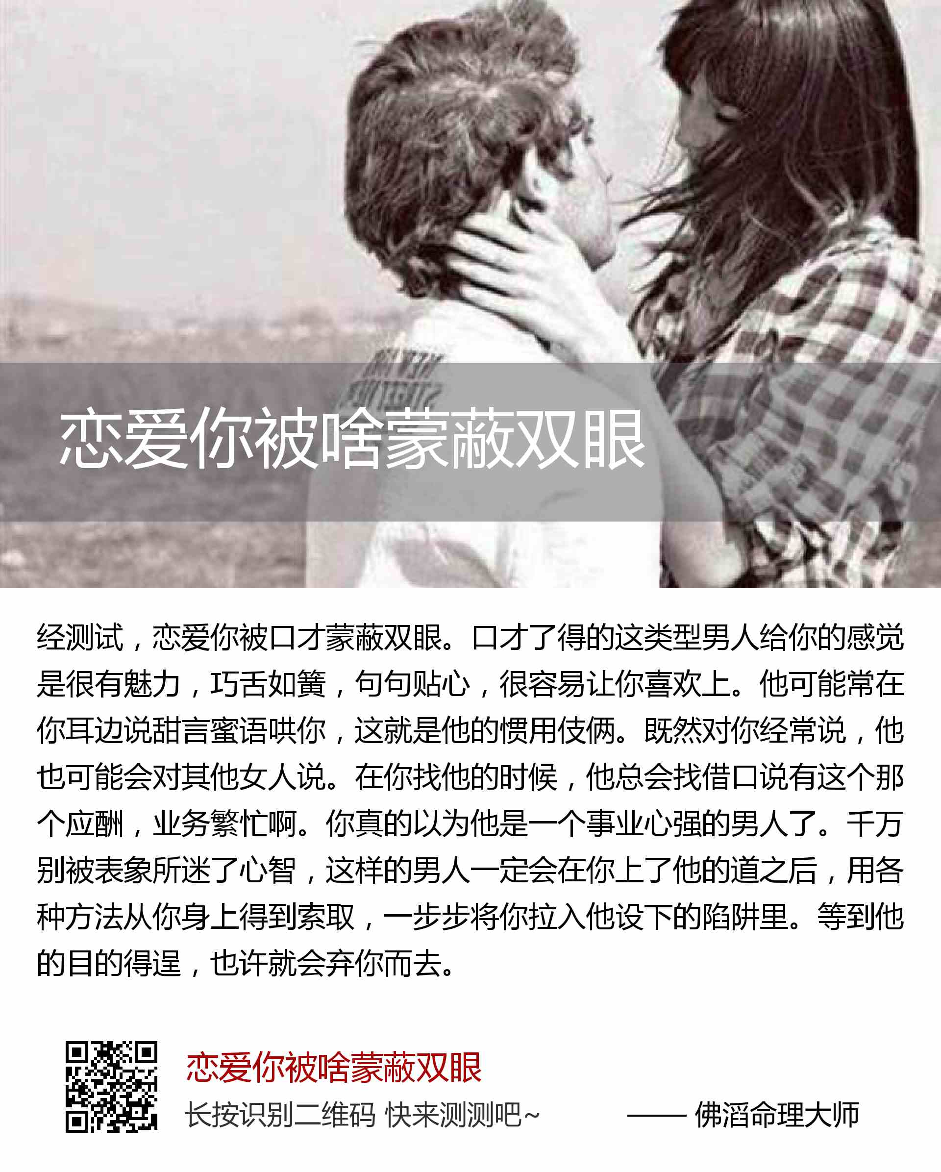 口才了得的这类型男人给你的感觉是很有魅力,巧舌如簧,句句贴心,很容易让你喜欢上。他可能常在你耳边说甜言蜜语哄你,这就是他的惯用伎俩。既然对你经常说,他也可能会对其他女人说。在你找他的时候,他总会找借口说有这个那个应酬,业务繁忙啊。你真的以为他是一个事业心强的男人了。千万别被表象所迷了心智,这样的男人一定会在你上了他的道之后,用各种方法从你身上得到索取,一步步将你拉入他设下的陷阱里。等到他的目的得逞,也许就会弃你而去。