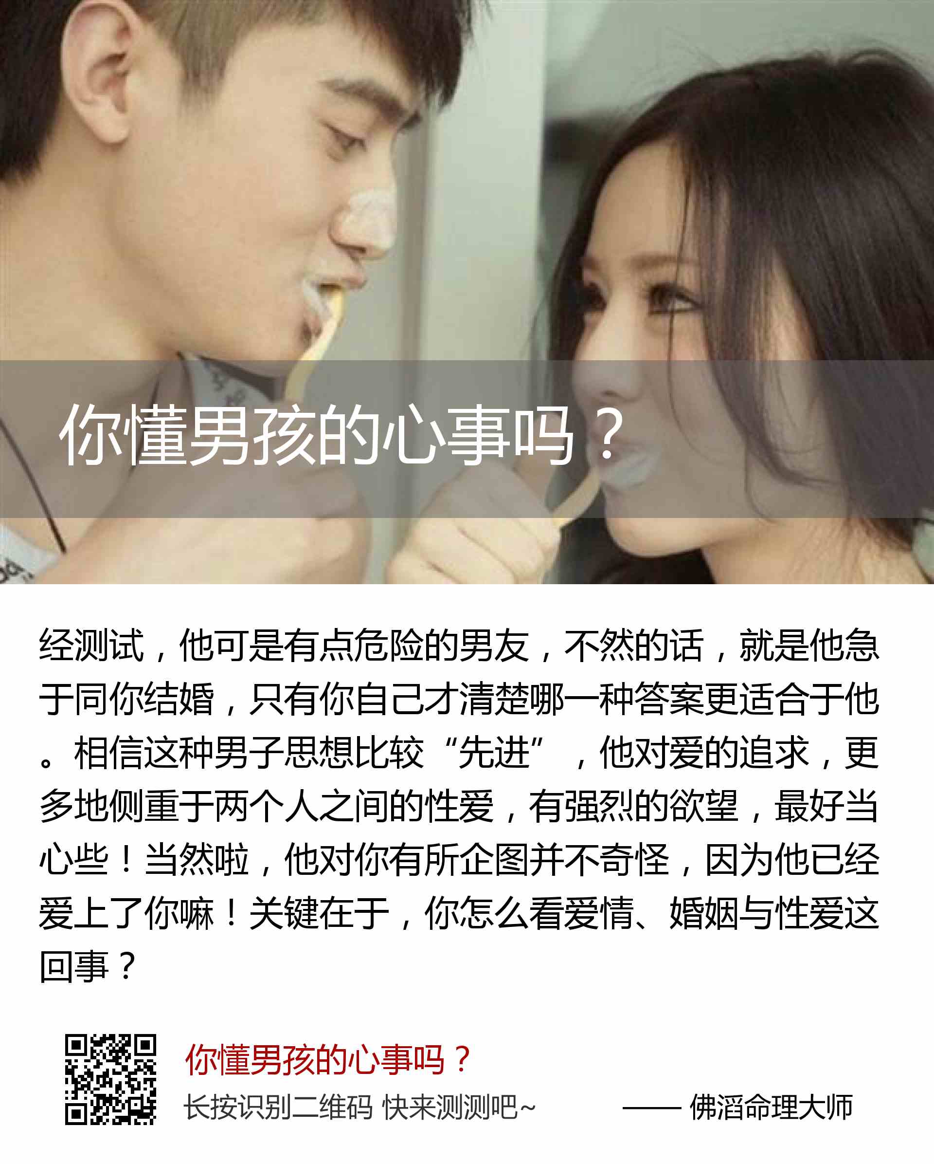他可是有点危险的男友,不然的话,就是他急于同你结婚,只有你自己才清楚哪一种答案更适合于他。