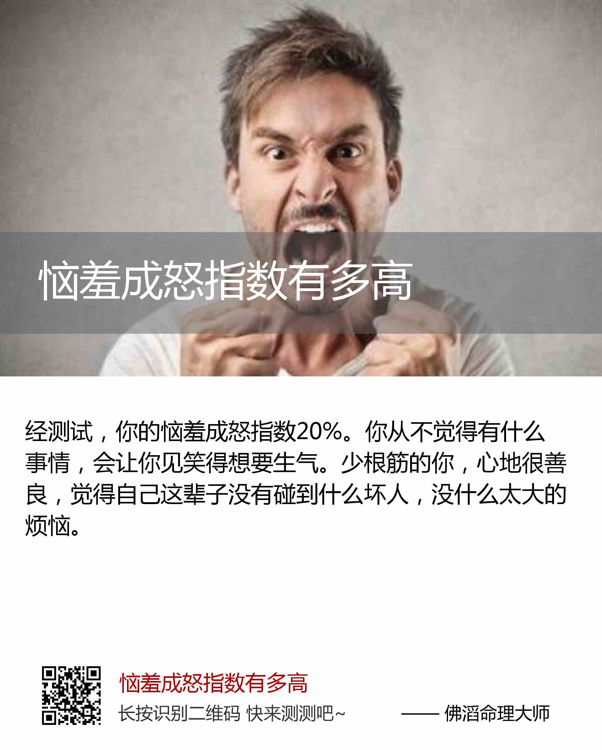 你的恼羞成怒指数20%。