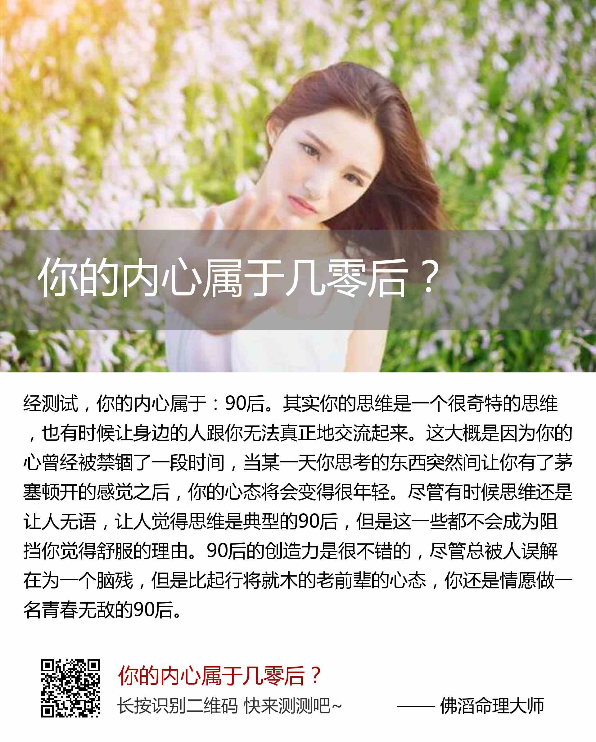 你的内心属于:90后。