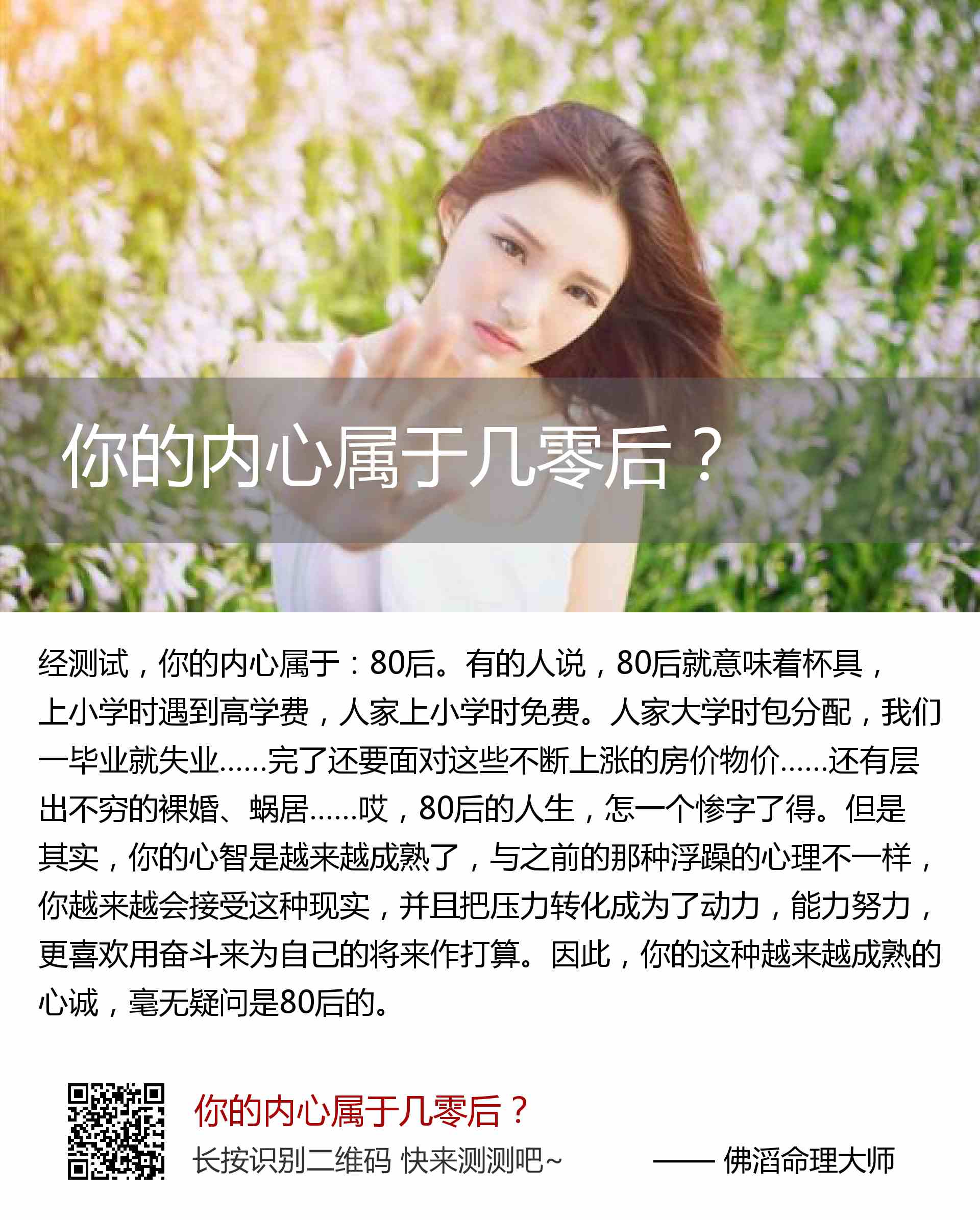 你的内心属于:80后。