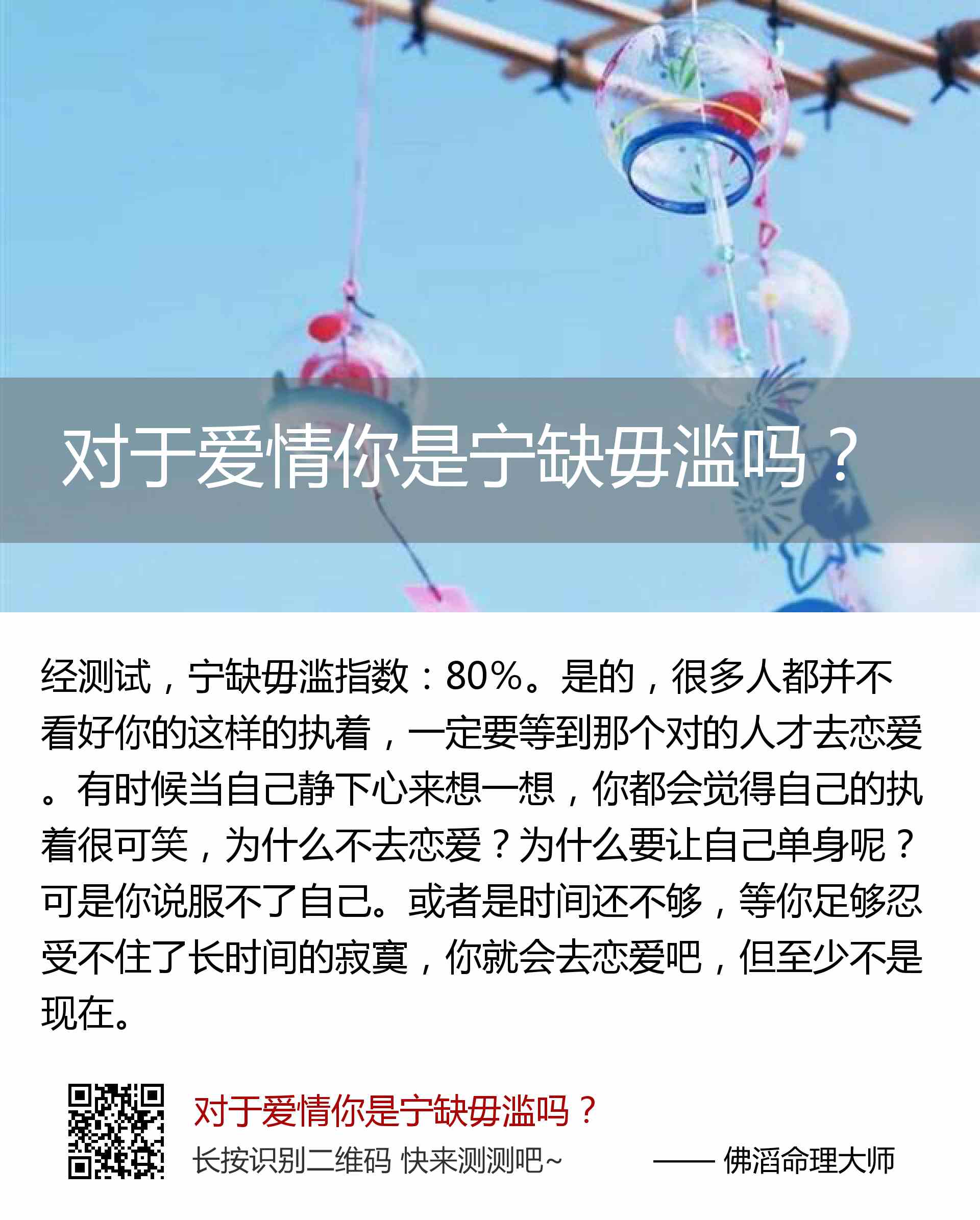 是的,很多人都并不看好你的这样的执着,一定要等到那个对的人才去恋爱。有时候当自己静下心来想一想,你都会觉得自己的执着很可笑,为什么不去恋爱?为什么要让自己单身呢?可是你说服不了自己。或者是时间还不够,等你足够忍受不住了长时间的寂寞,你就会去恋爱吧,但至少不是现在。