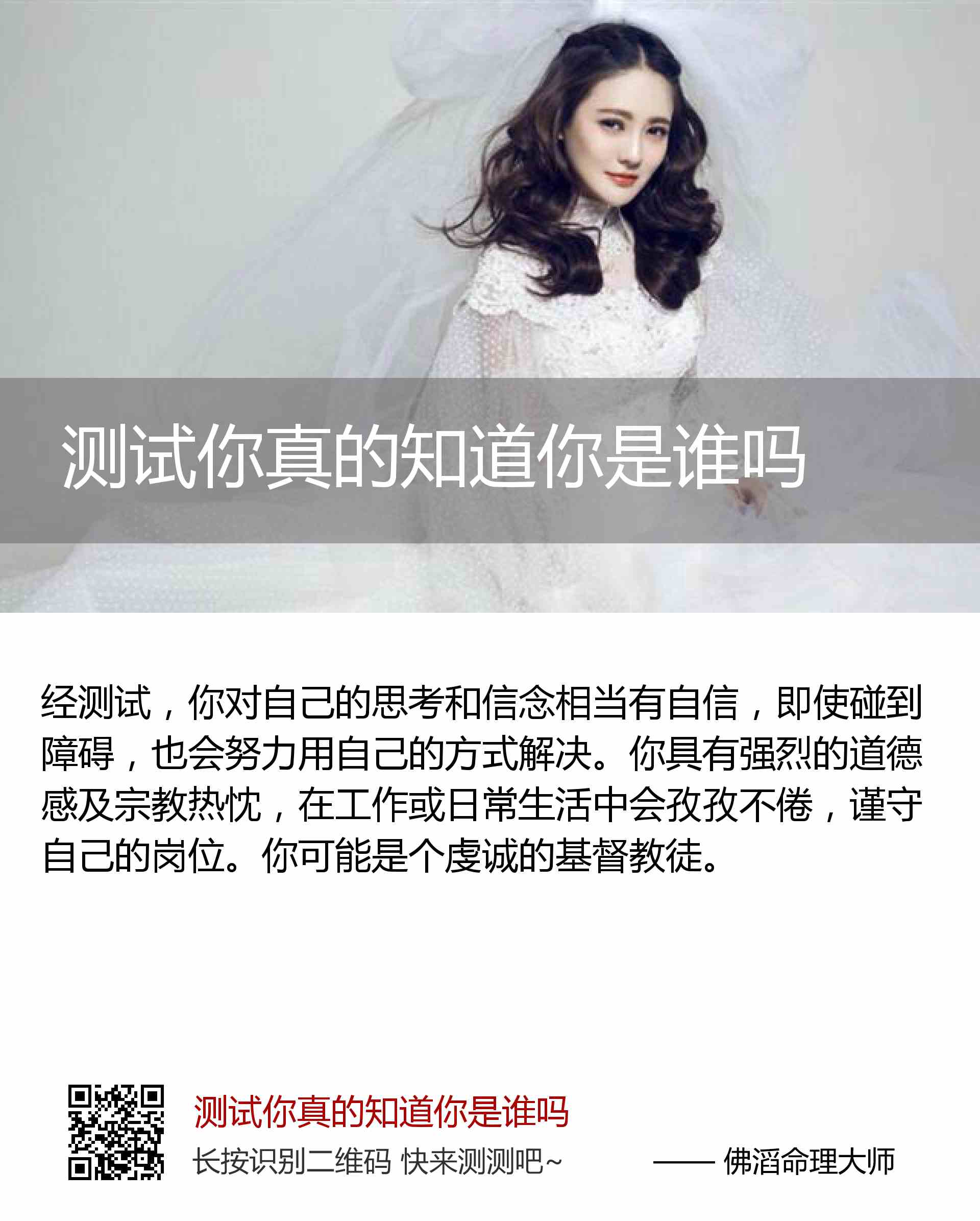 你具有强烈的道德感及宗教热忱,在工作或日常生活中会孜孜不倦,谨守自己的岗位。你可能是个虔诚的基督教徒。