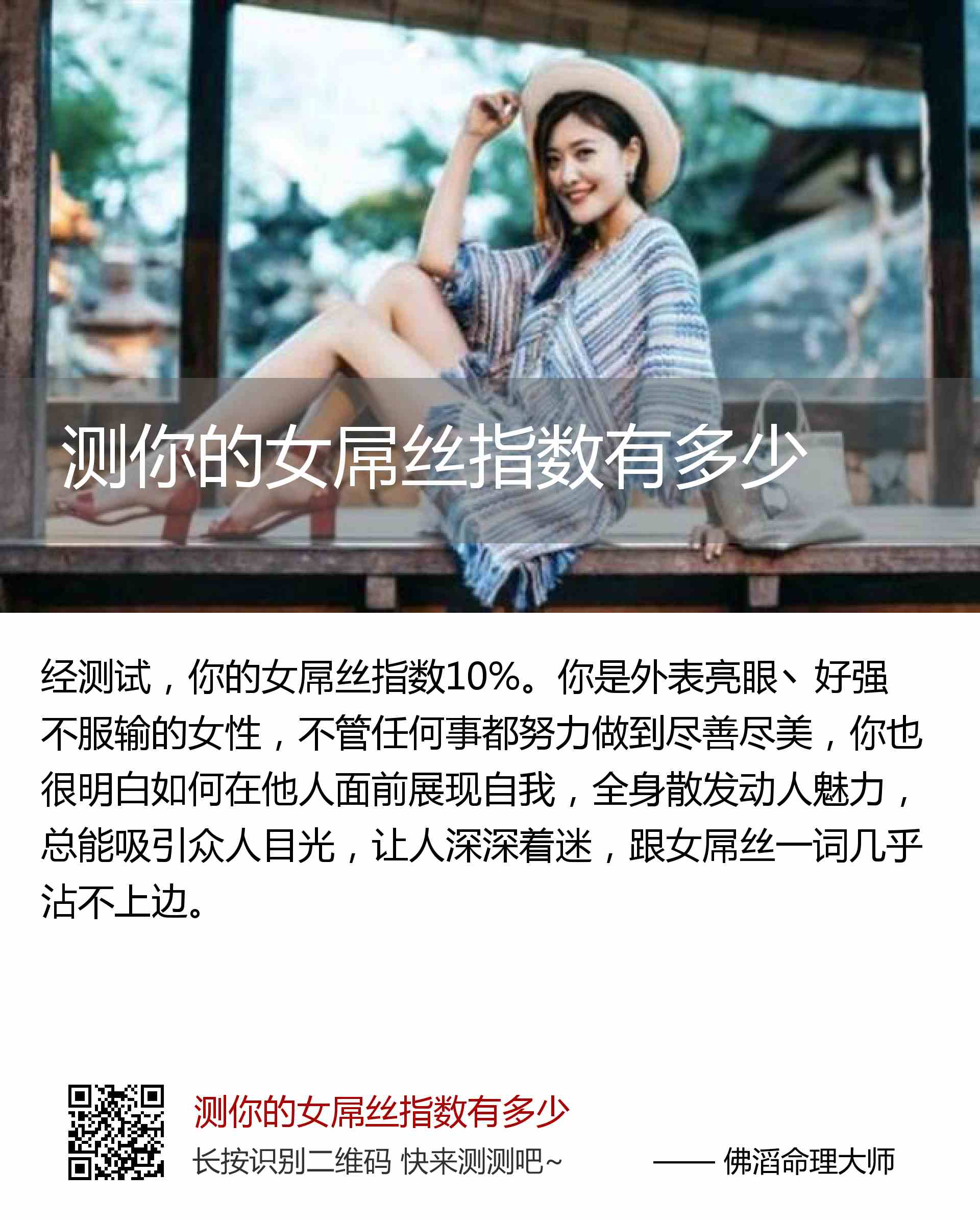 你是外表亮眼丶好强不服输的女性,不管任何事都努力做到尽善尽美,你也很明白如何在他人面前展现自我,全身散发动人魅力,总能吸引众人目光,让人深深着迷,跟女屌丝一词几乎沾不上边。