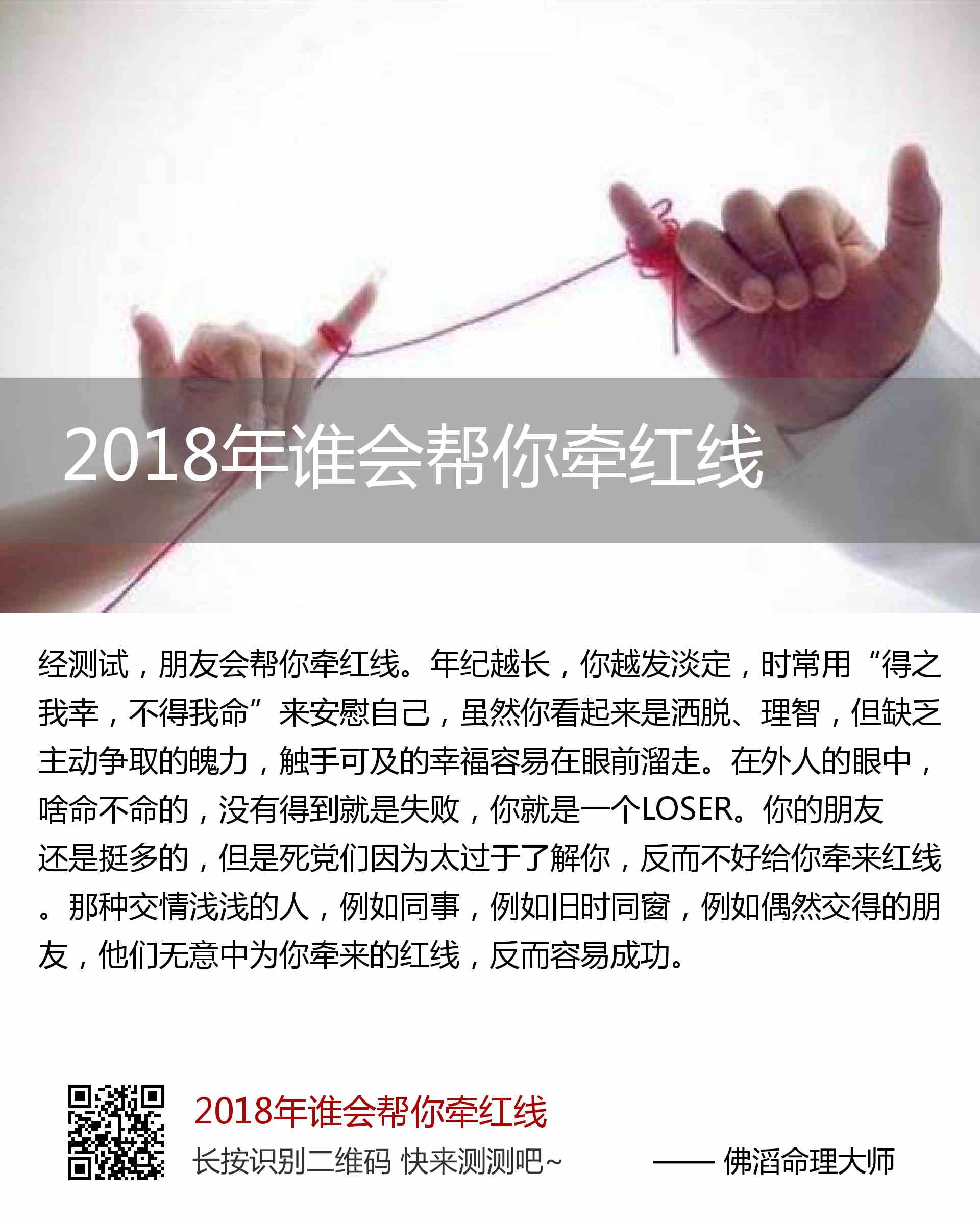 年纪越长,你越发淡定,时常用“得之我幸,不得我命”来安慰自己,虽然你看起来是洒脱、理智,但缺乏主动争取的魄力,触手可及的幸福容易在眼前溜走。在外人的眼中,啥命不命的,没有得到就是失败,你就是一个LOSER。你的朋友还是挺多的,但是死党们因为太过于了解你,反而不好给你牵来红线。那种交情浅浅的人,例如同事,例如旧时同窗,例如偶然交得的朋友,他们无意中为你牵来的红线,反而容易成功。