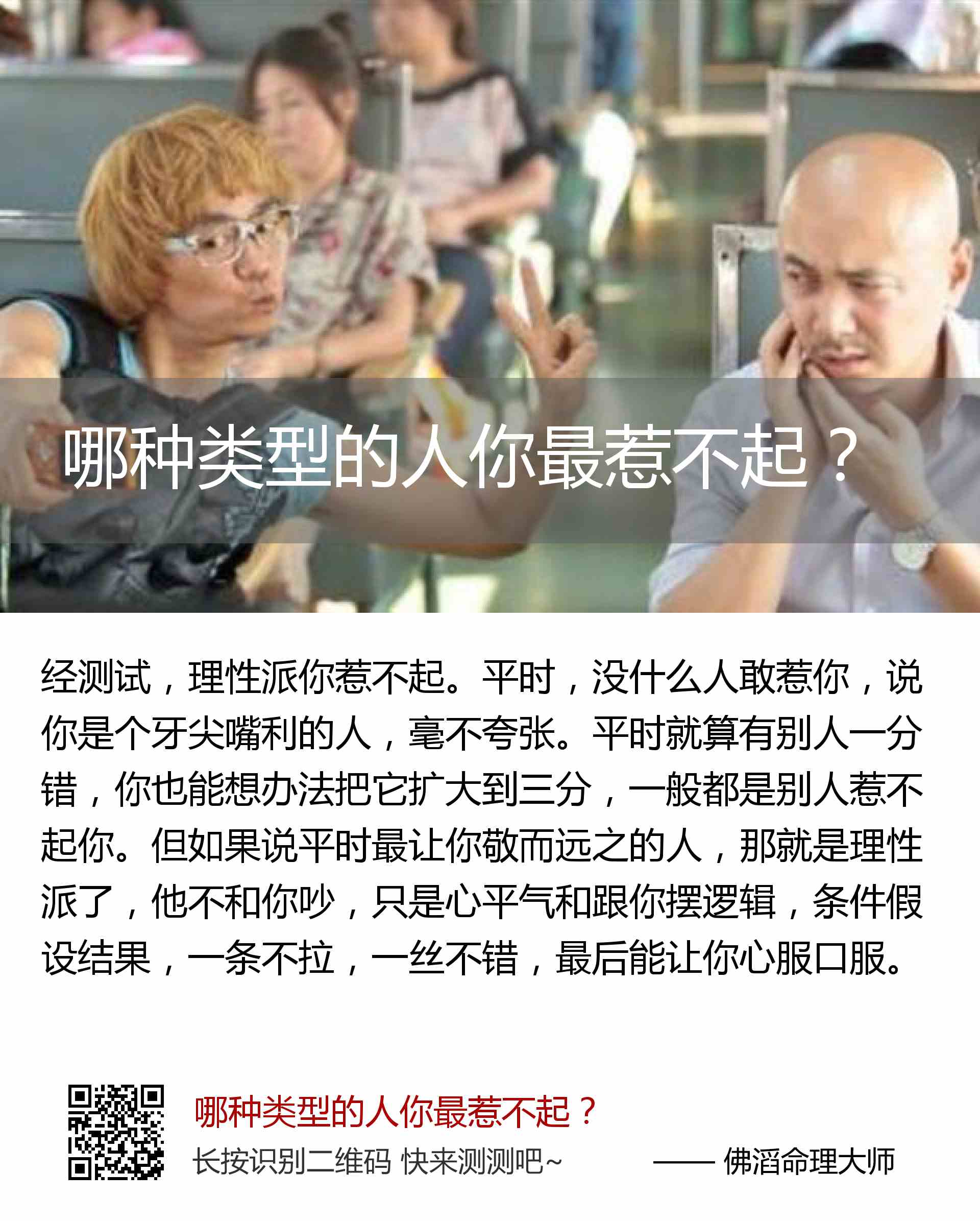 平时,没什么人敢惹你,说你是个牙尖嘴利的人,毫不夸张。平时就算有别人一分错,你也能想办法把它扩大到三分,一般都是别人惹不起你。但如果说平时最让你敬而远之的人,那就是理性派了,他不和你吵,只是心平气和跟你摆逻辑,条件假设结果,一条不拉,一丝不错,最后能让你心服口服。