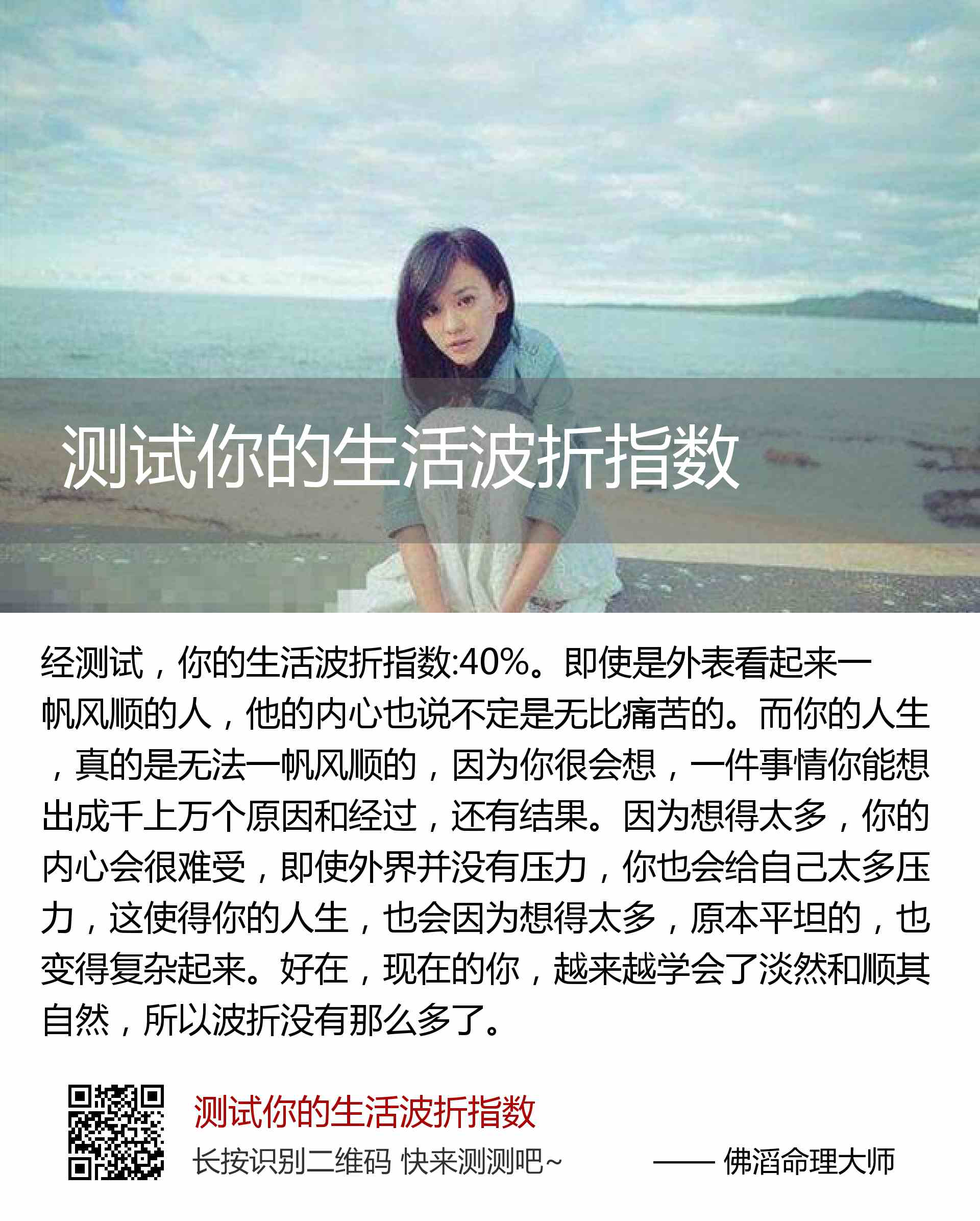 即使是外表看起来一帆风顺的人,他的内心也说不定是无比痛苦的。而你的人生,真的是无法一帆风顺的,因为你很会想,一件事情你能想出成千上万个原因和经过,还有结果。因为想得太多,你的内心会很难受,即使外界并没有压力,你也会给自己太多压力,这使得你的人生,也会因为想得太多,原本平坦的,也变得复杂起来。好在,现在的你,越来越学会了淡然和顺其自然,所以波折没有那么多了。