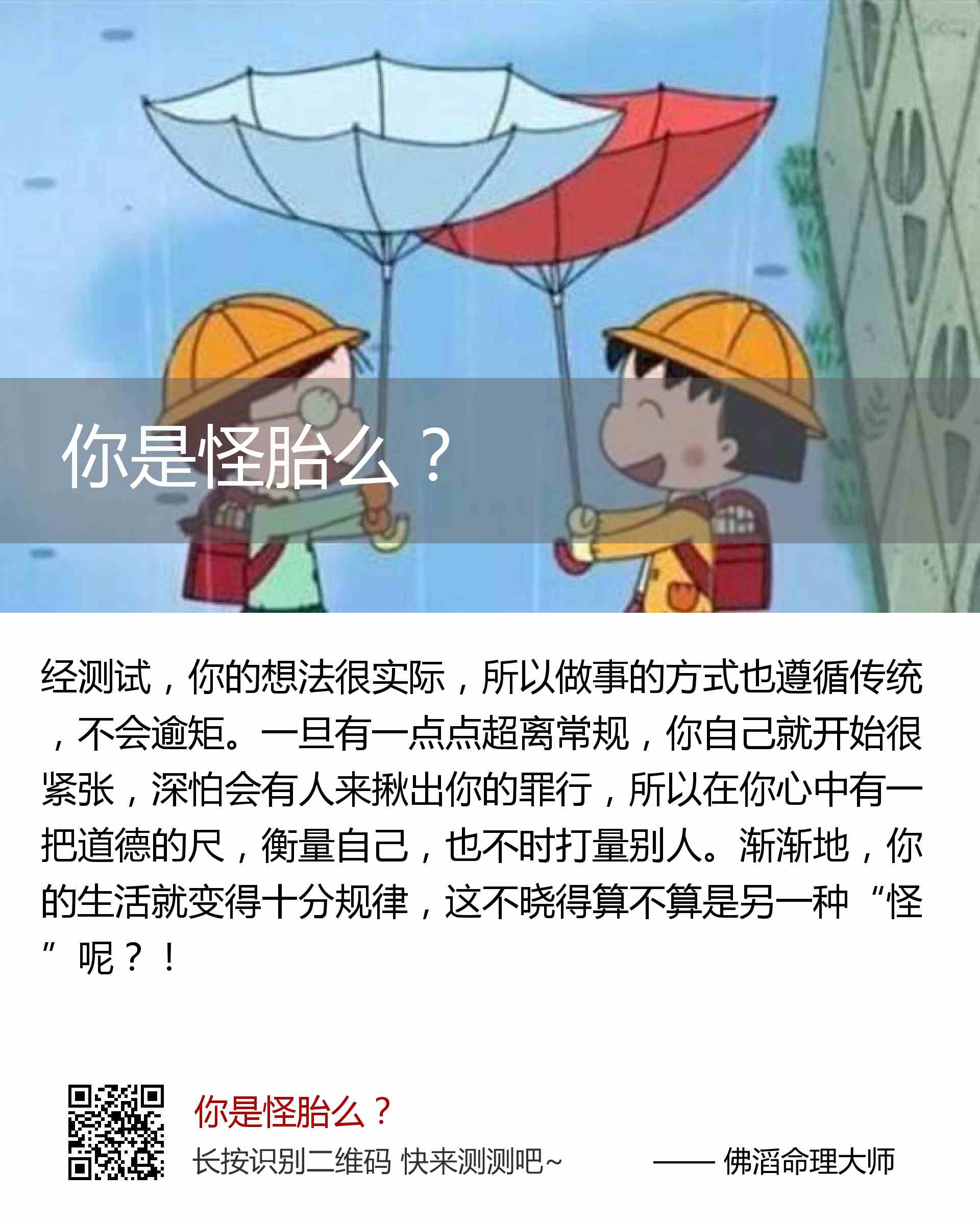 你的想法很实际,所以做事的方式也遵循传统,不会逾矩。