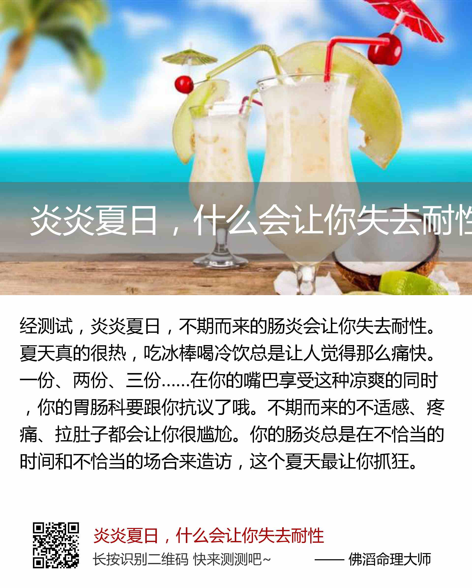 夏天真的很热,吃冰棒喝冷饮总是让人觉得那么痛快。一份、两份、三份……在你的嘴巴享受这种凉爽的同时,你的胃肠科要跟你抗议了哦。不期而来的不适感、疼痛、拉肚子都会让你很尴尬。你的肠炎总是在不恰当的时间和不恰当的场合来造访,这个夏天最让你抓狂。