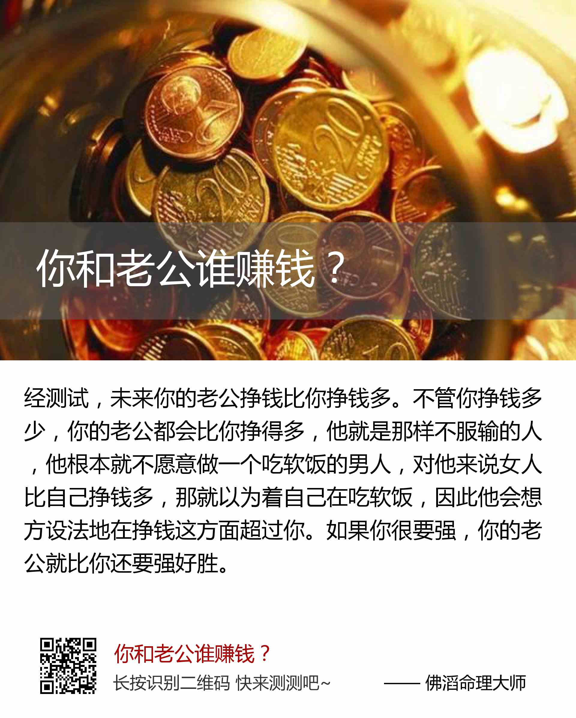 未来你的老公挣钱比你挣钱多。